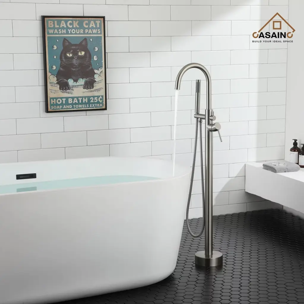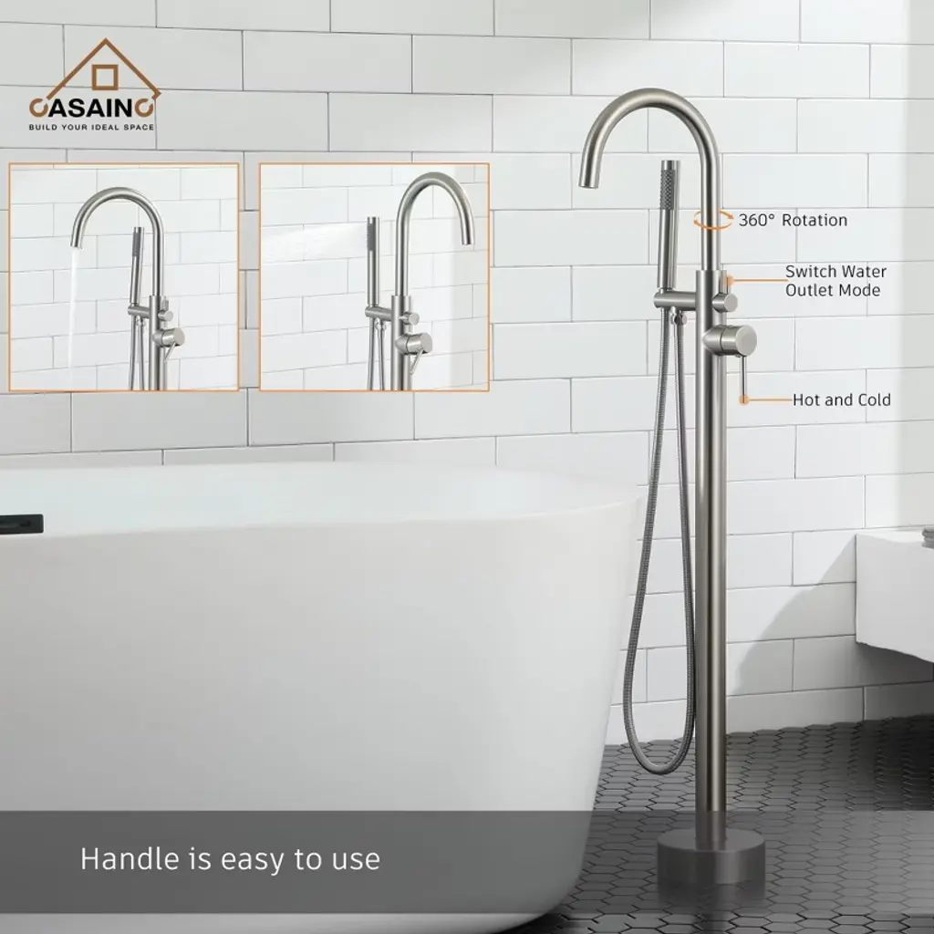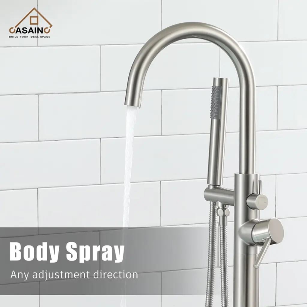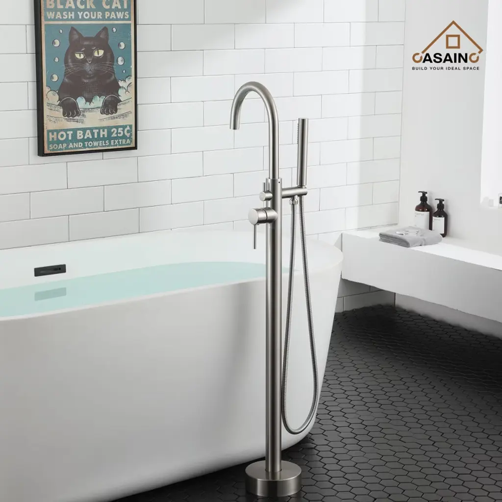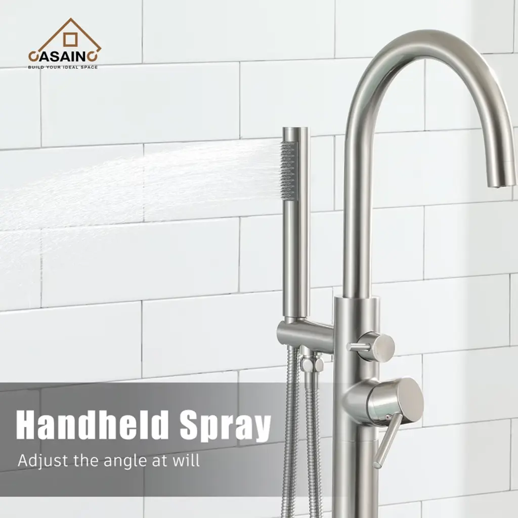 Casainc Freestanding Tub Faucet For Clawfoot Bathtub – Floor Mounted, Single Handle With Handheld Shower, Brushed Nickel