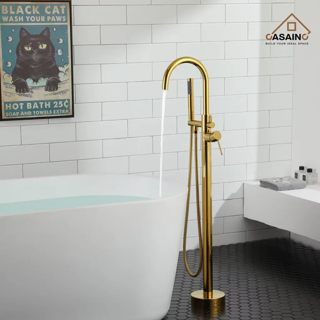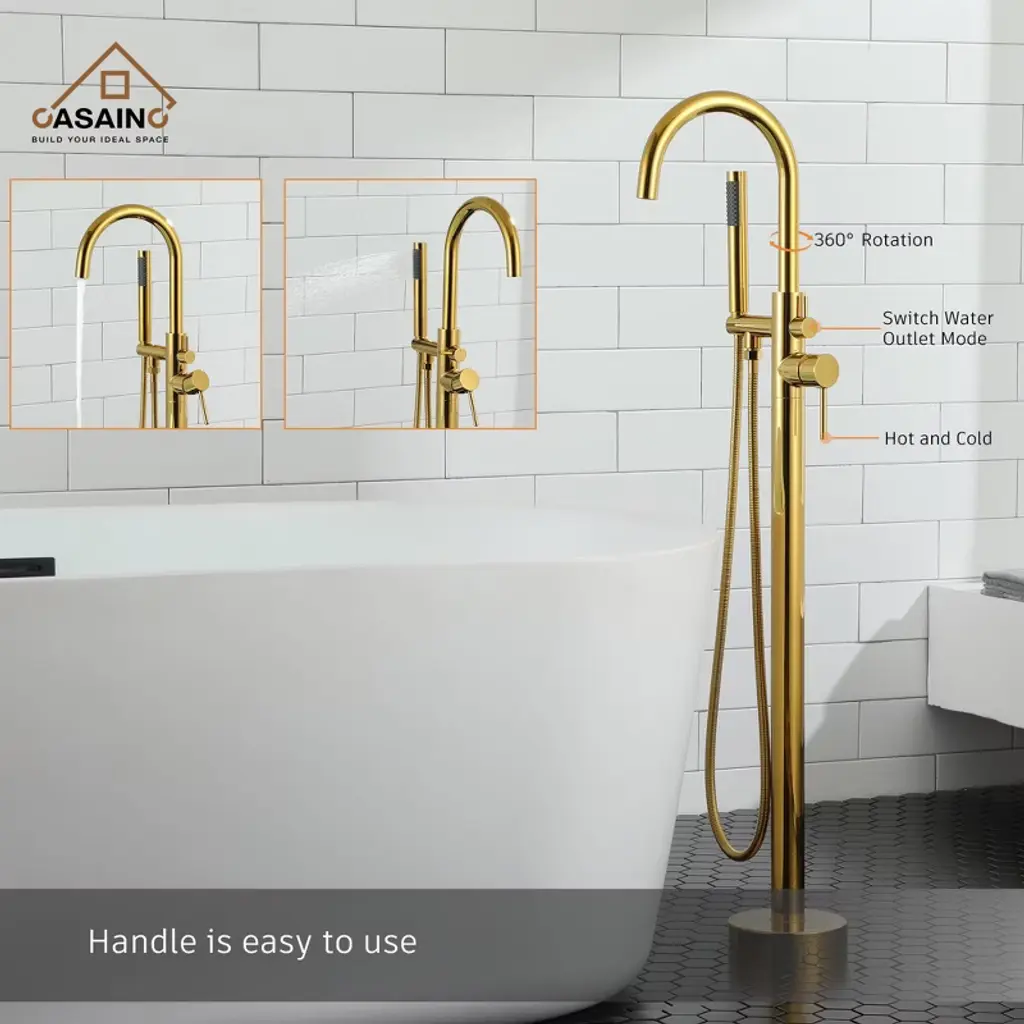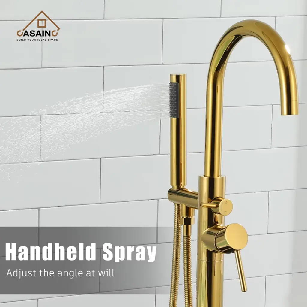 Casainc Freestanding Tub Faucet For Clawfoot Bathtub – Floor Mounted, Single Handle With Handheld Shower, Gold