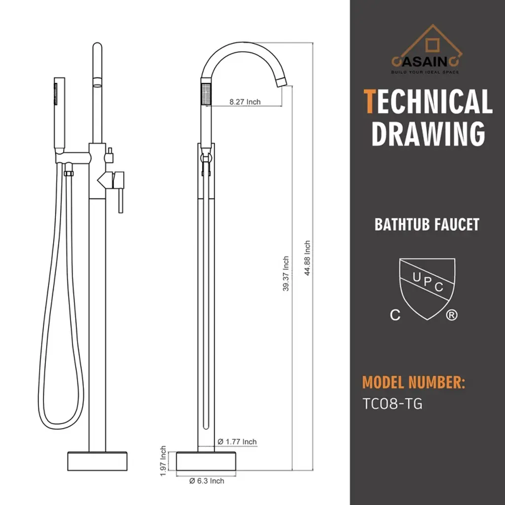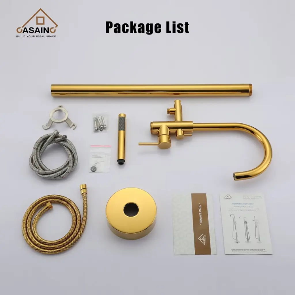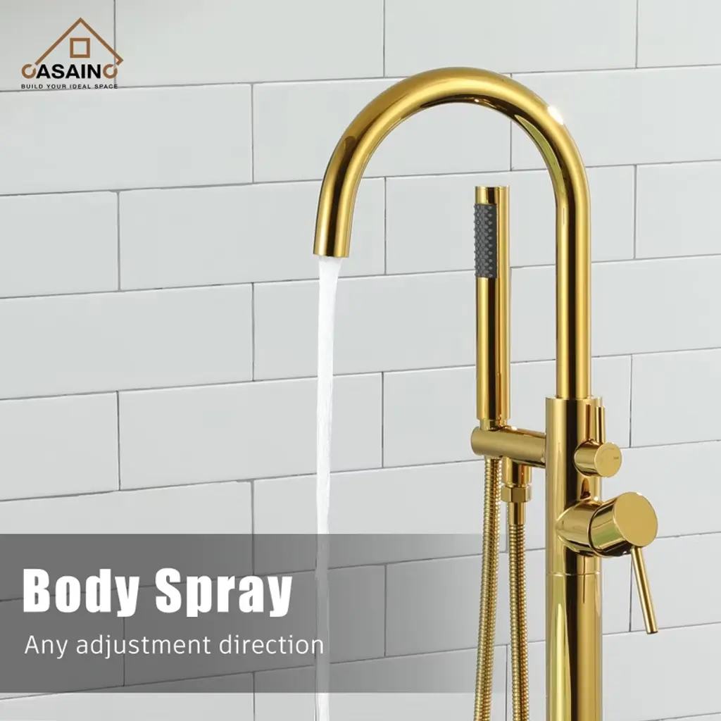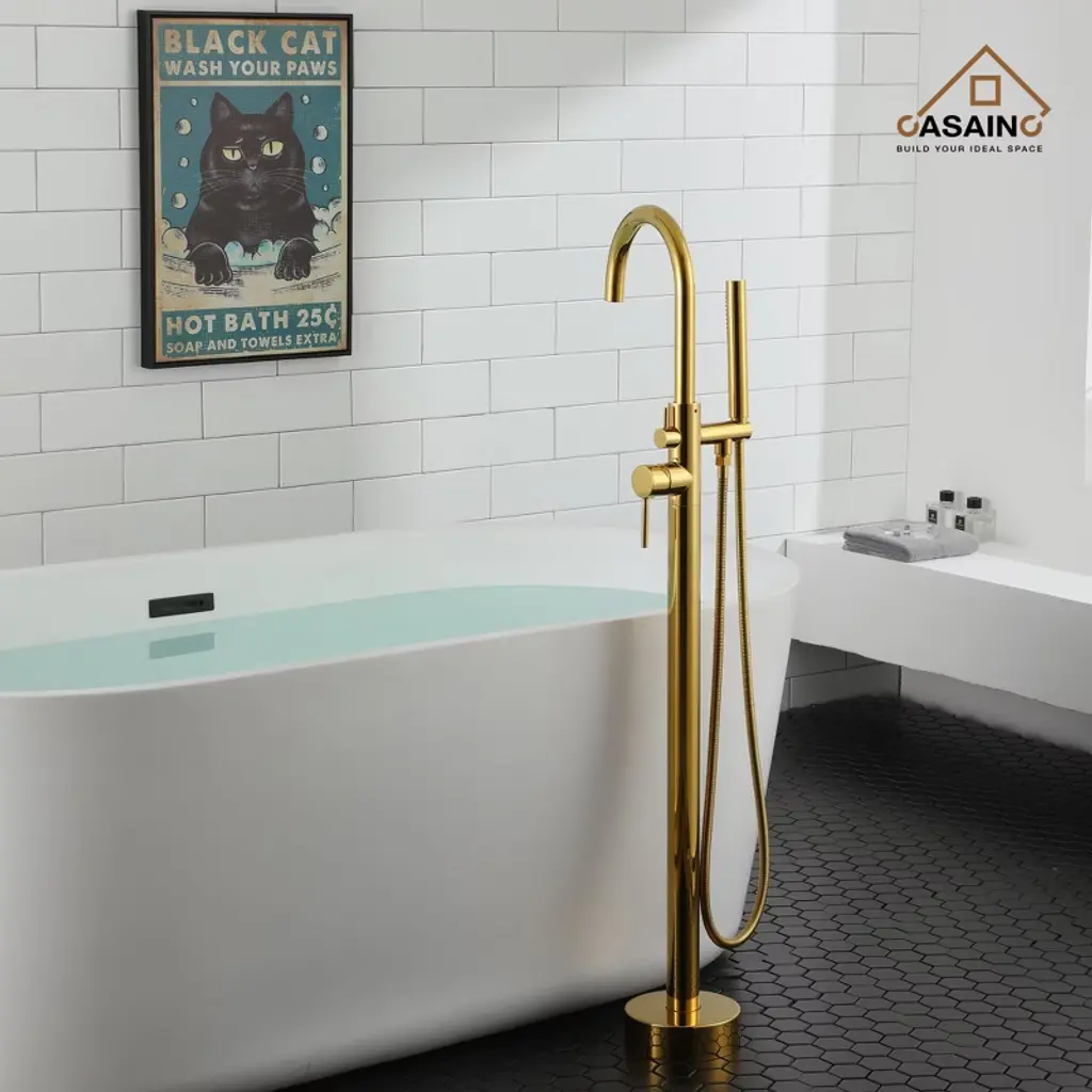 Casainc Freestanding Tub Faucet For Clawfoot Bathtub – Floor Mounted, Single Handle With Handheld Shower, Gold