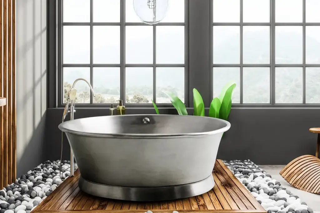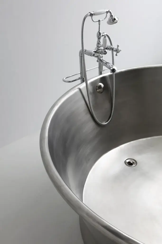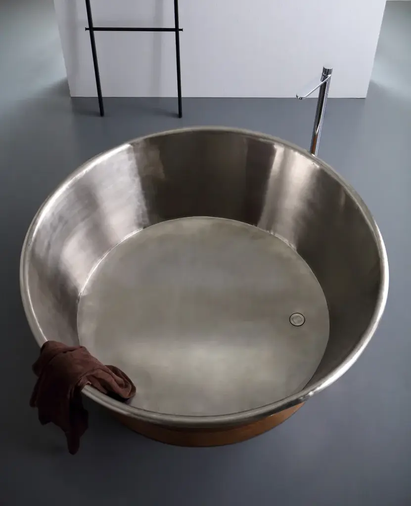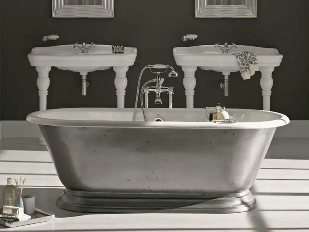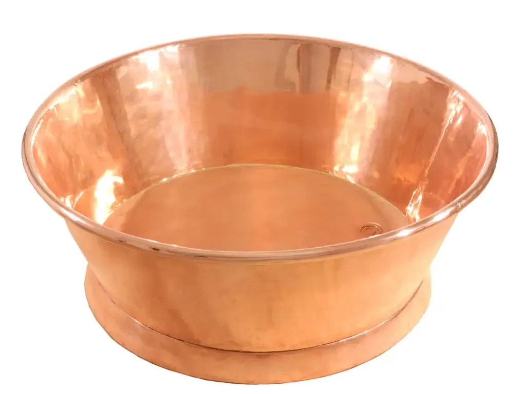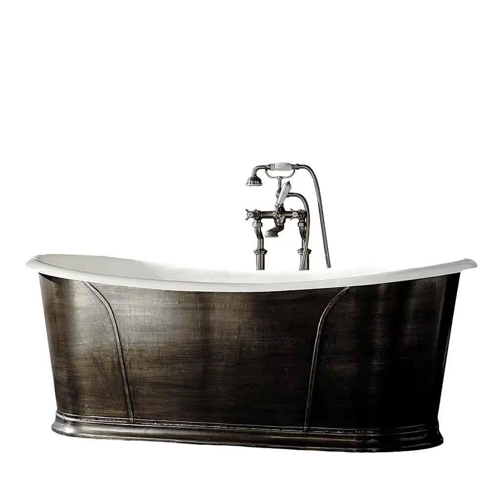 Bleu Provence copper tubs are perfect to give charm and personality to your house or hotel. Various metal finishes (inside and outside). Exist in several sizes (from small to large : 150 to 200 cm) and shapes.IMPORTANT NOTICE ON CAST IRON BATHTUBS:- All bathtubs are in cast iron and enameled in Titanium.- The feet are made of cast iron and may have a white, colored, chrome or gold finish, nickel, nickel matt.- Colors: for the outside, all colors are possible. Just give us the desired RAL or NCS code.- Bathtubs prices are without waste or syphon.- On request, we can make a hole for the taps.