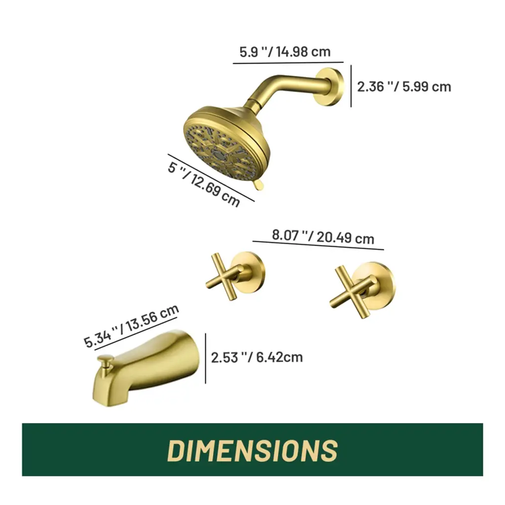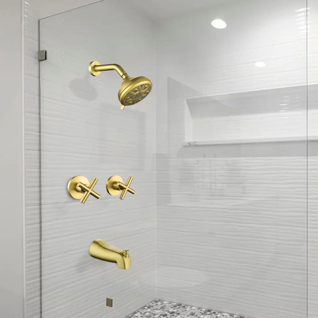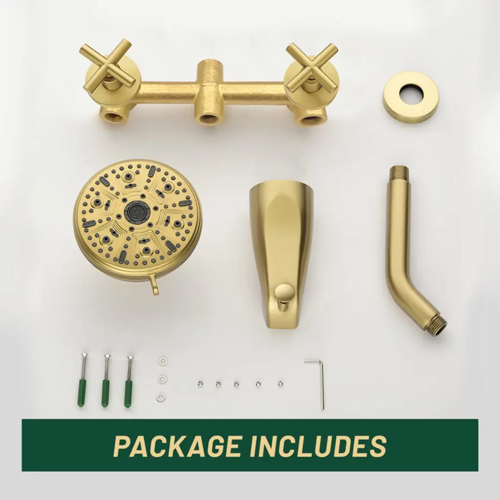 Cobbe 2-handle Brushed Gold Wall Mounted Shower System With 10 Settings Abs Shower Head And Bathtub Spout Shower Faucet Set