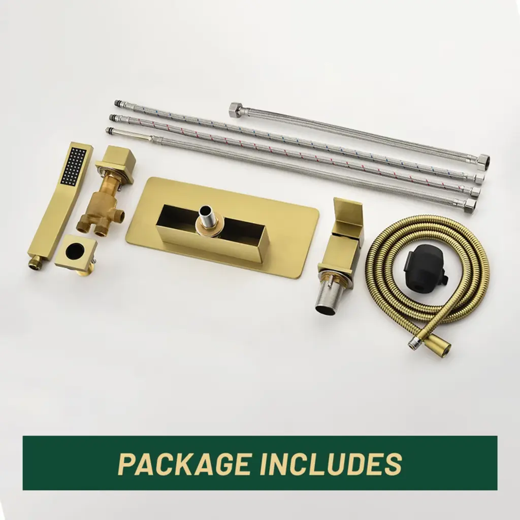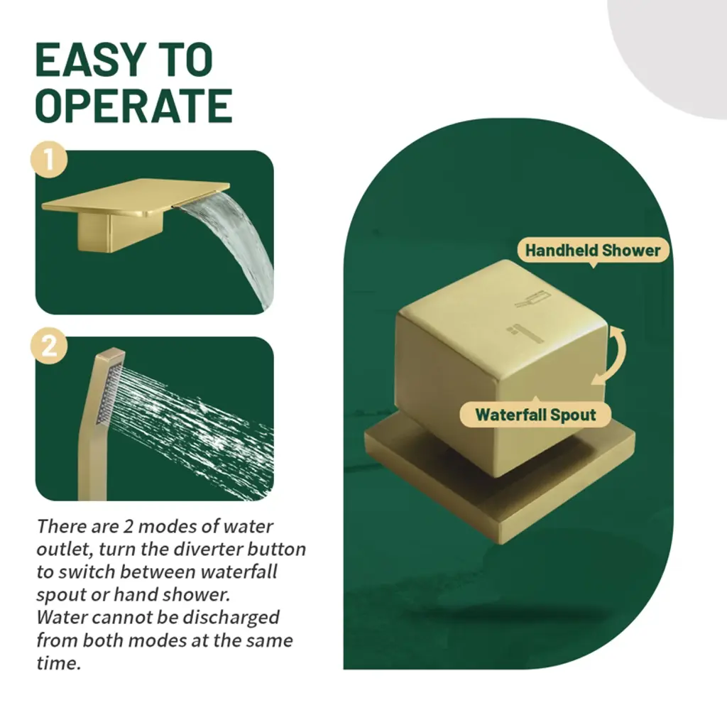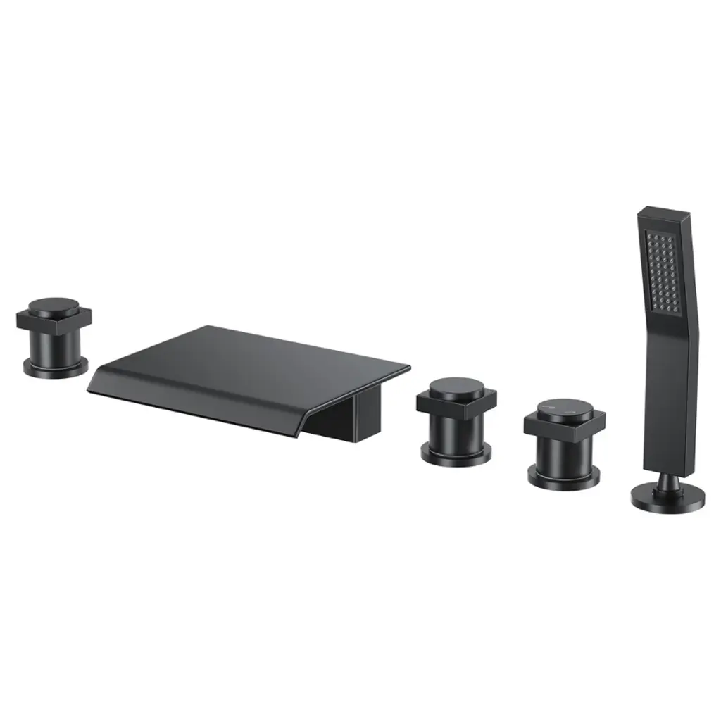 This bathtub faucet is made of high-quality brass and stainless steel, and the overall design is elegant and stylish.Its material characteristics make the product has a good anti-corrosion ability and durability, can extend the service life of the product.Simple and generous modeling design, so that it can be coordinated with a variety of styles of bathroom fixtures and decorations, to adapt to most of the bathtub bathroom environment, to ensure practical functionality at the same time, but also take into account the visual aesthetics. The bathtub shower faucet set comes with a handheld shower, bathtub faucet and 5 hoses.The bathtub faucet is designed with an 11.02-inch wide waterfall spout. The wide waterfall spout fills the bathtub quickly and provides a clear and steady laminar flow of water to enhance the bathing experience.The hand shower comes with a 59-inch hose with gravity ball, and the longer hose length effectively extends the shower's range of motion.At the same time, when the shower is finished, the gravity ball guides the hose back into place with its own gravity, keeping your bathroom clean and tidy, and providing you with a convenient and efficient experience. This shower faucet set adopts simple single-lever control, which is intuitive and convenient to operate, and can easily realize the water flow adjustment.In addition, it is also equipped with a diverter knob, which can be switched between the bathtub faucet and the handheld shower with a simple turn.Whether you are immersed in the gentle embrace of the bathtub or enjoying the pleasure of the hand shower, it is easy to realize, creating a highly efficient and comfortable bathing environment for you, so that your body and mind can get the ultimate relaxation under the caress of the water. This product adopts 4-hole installation method, reasonable layout is convenient for daily shower use. We have a professional after-sales team, ready to provide you with support to ensure peace of mind and worry-free use.