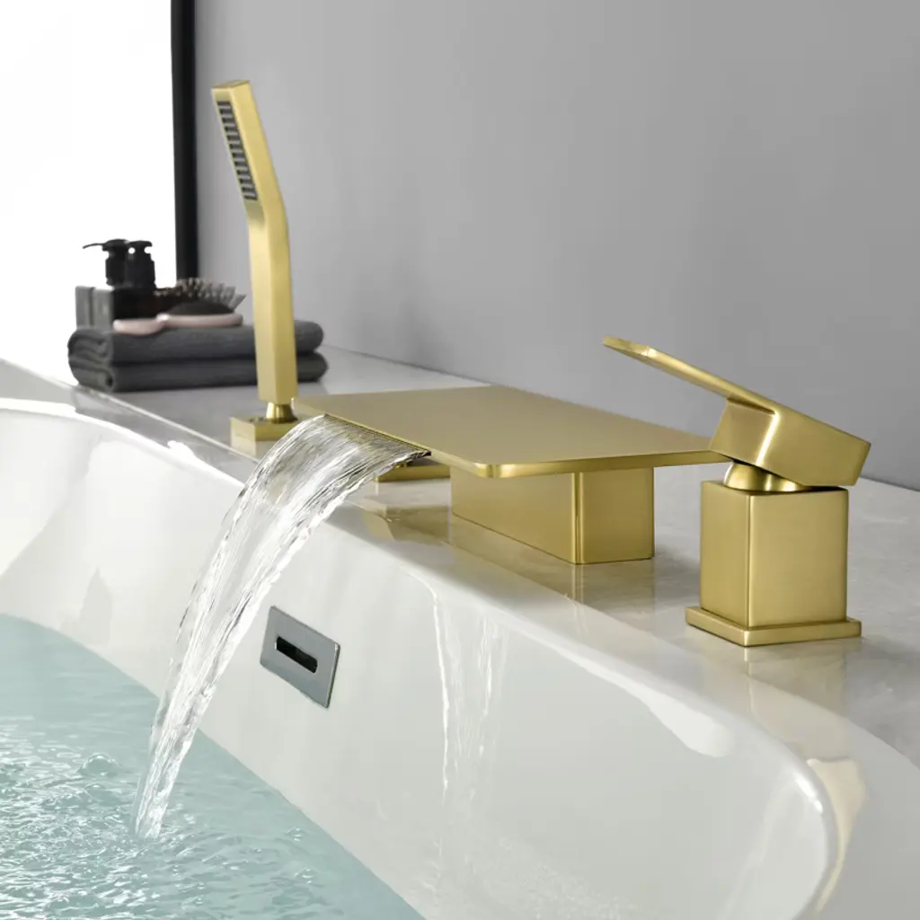 Cobbe Bathtub Faucet Set With 11.02-inch Wide Bathtub Spout And Handheld Shower Single Handle 4-hole Installation Bathroom Faucet Brushed Gold