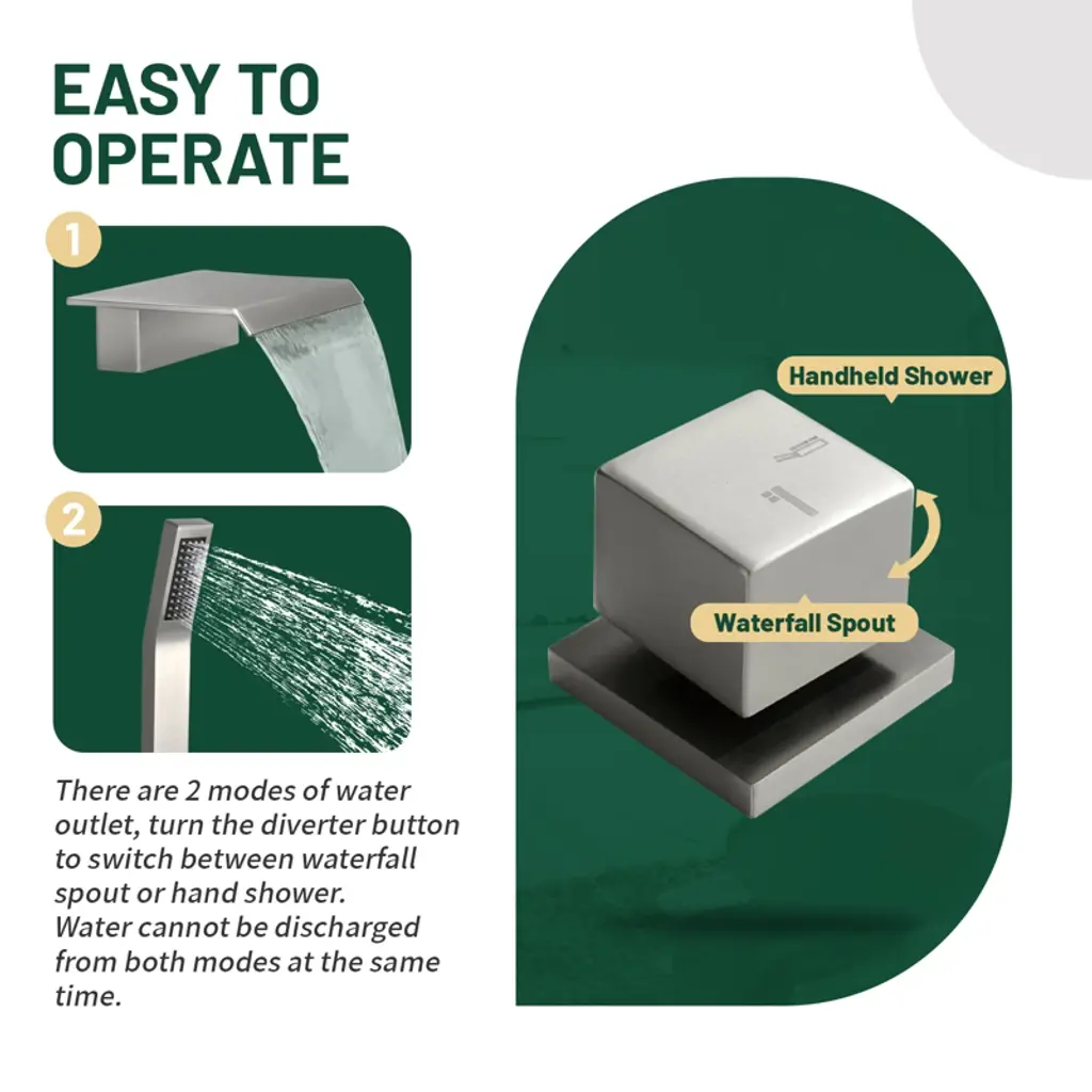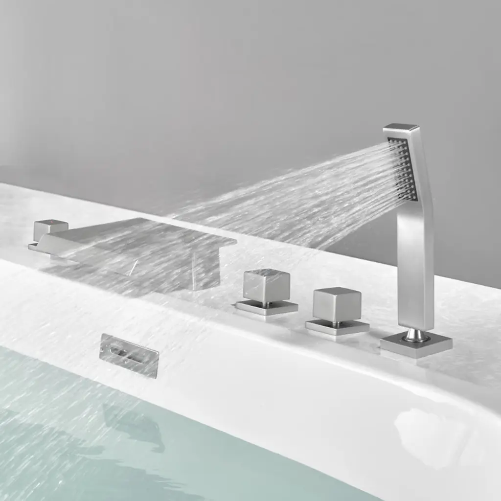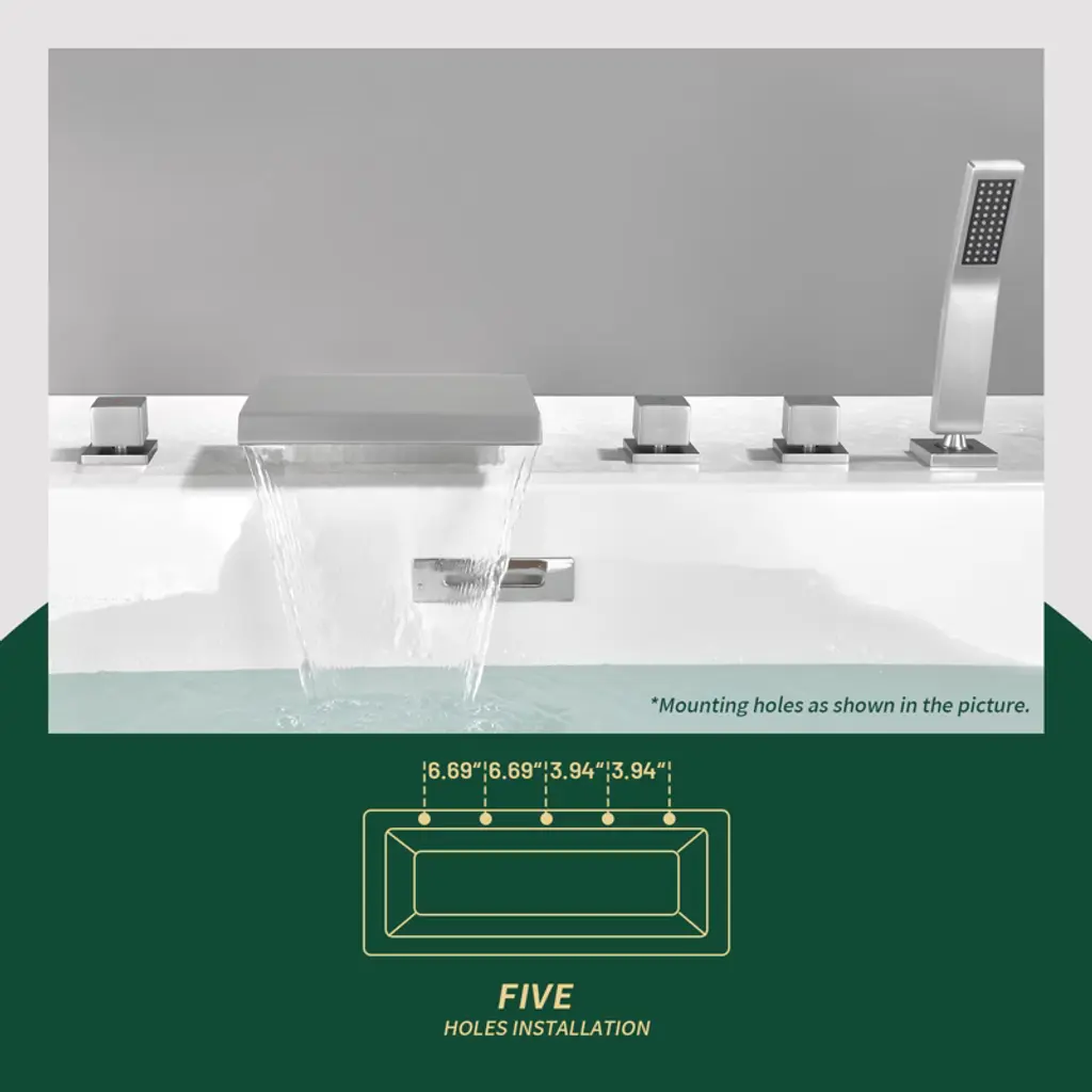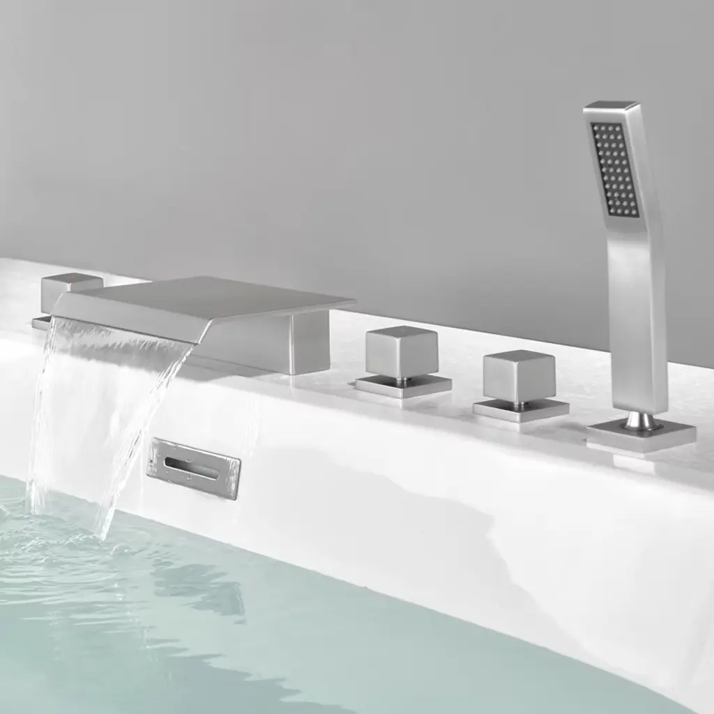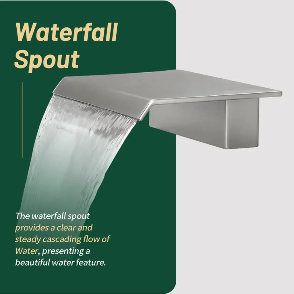 Cobbe Bathtub Faucet Set With Hand Shower, 7.87-inch Wide Waterfall Spout And Waste Pipe 5-hole Installation Brushed Nickel
