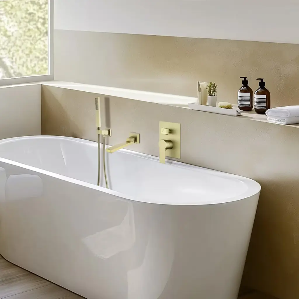 Reliable Design: This wall-mounted bathtub faucet with handheld shower not only adds an elegant texture to the bathroom, but also provides convenient and practical functions to meet the diverse needs of daily use.