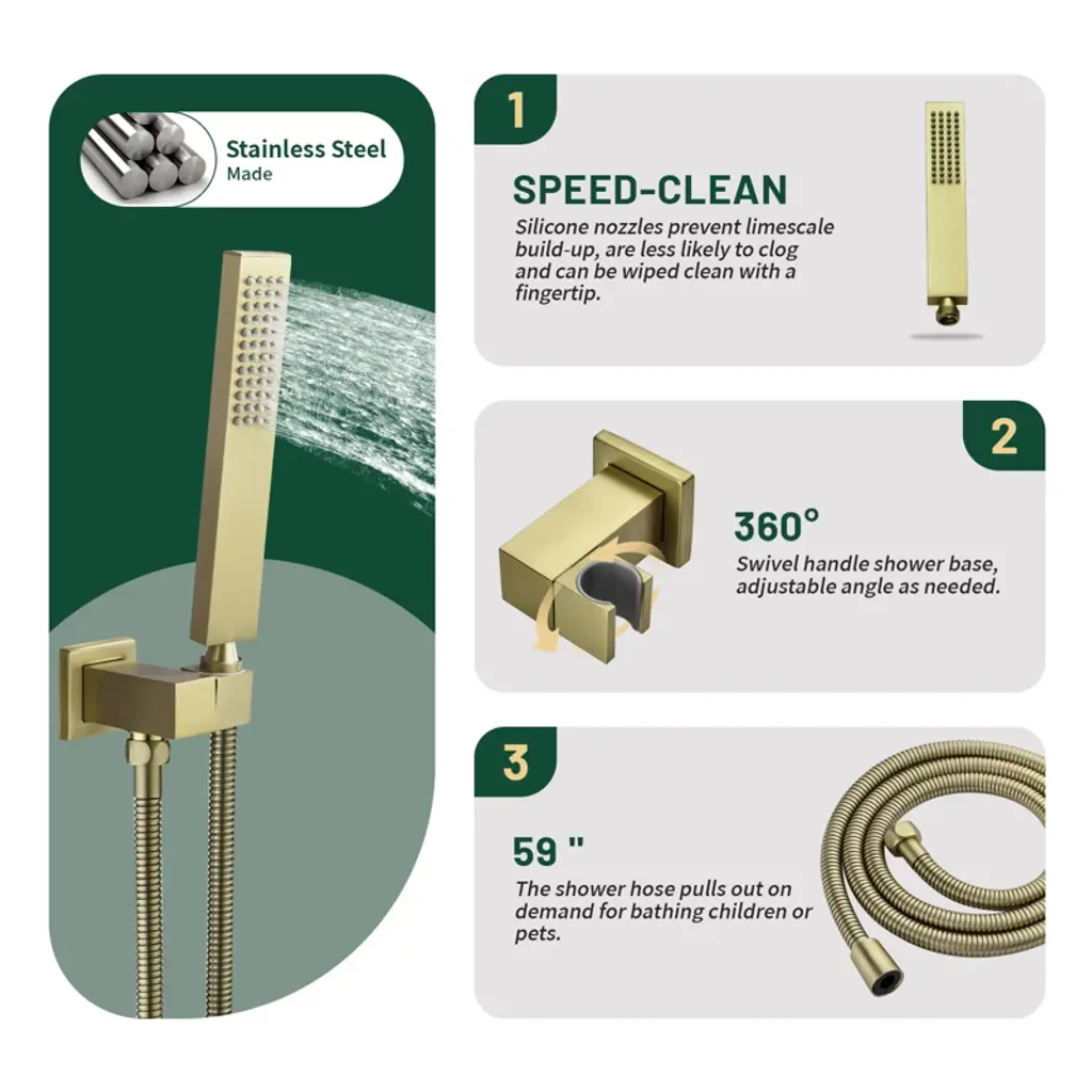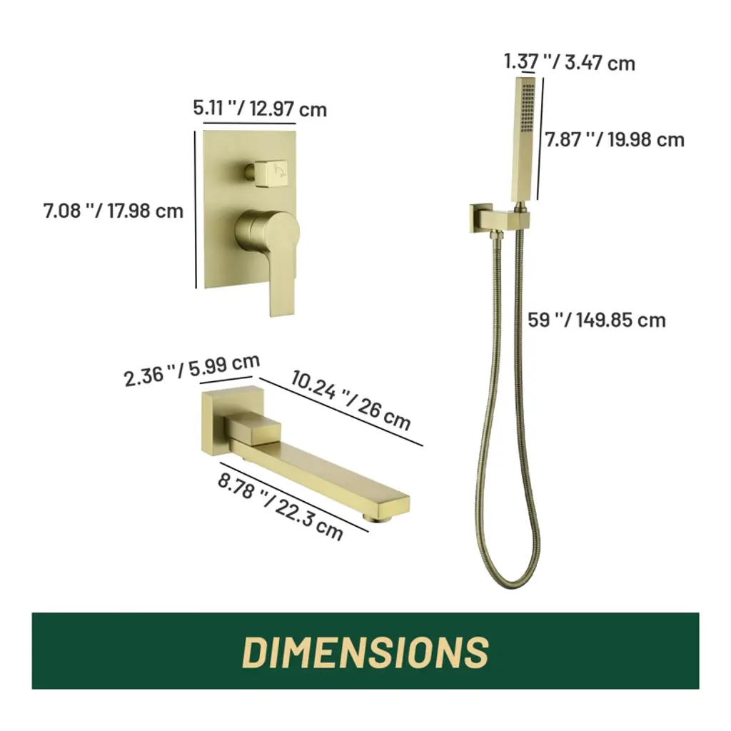 Cobbe Bathtub Shower Faucet Set With Handheld Shower Bathtub Faucet And 59-inch Hose Single Handle Wall Mounted Shower System Brushed Gold