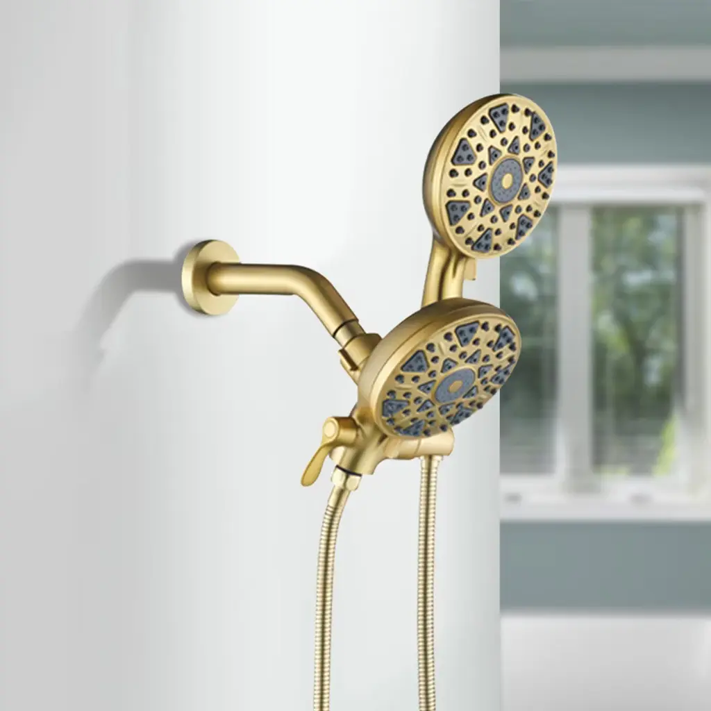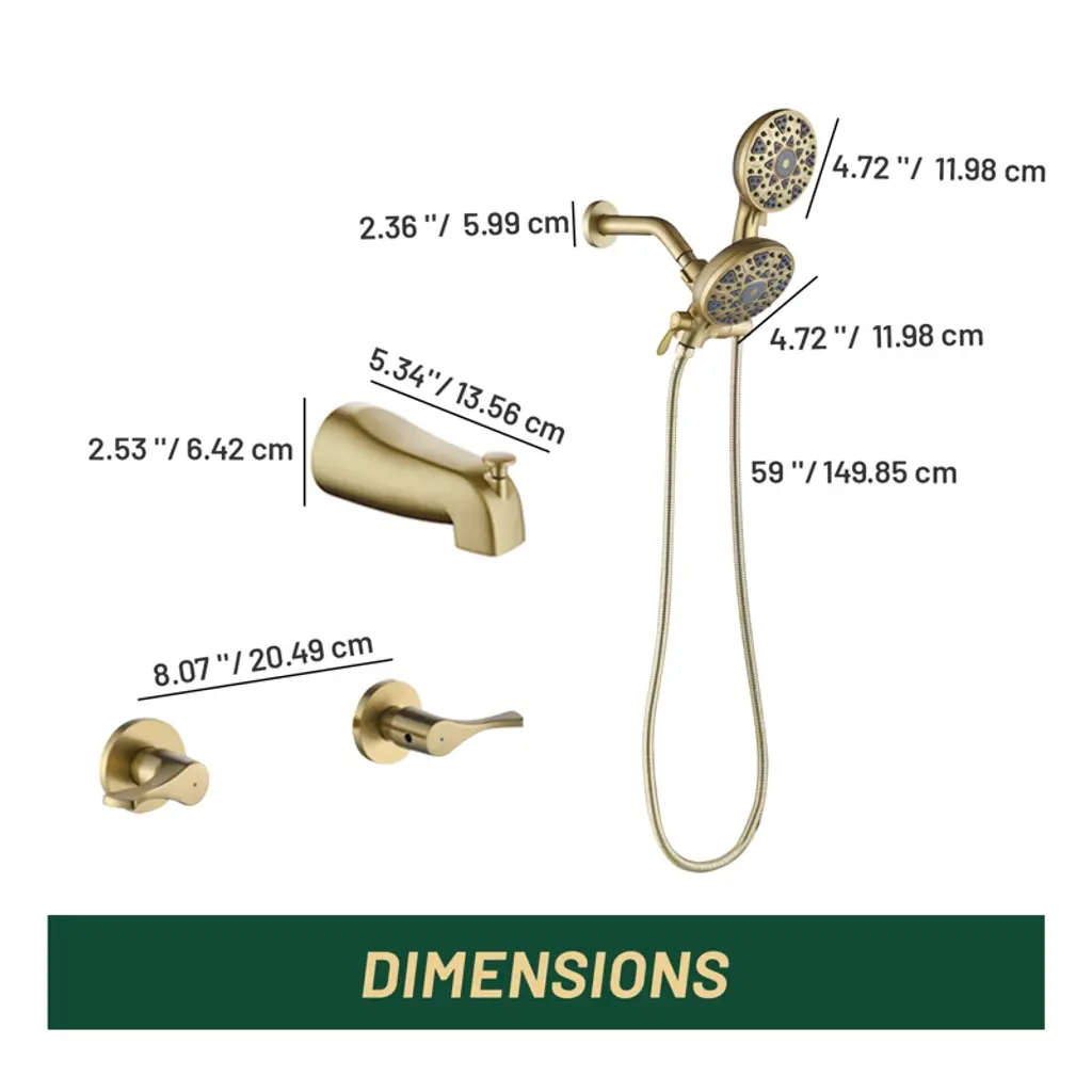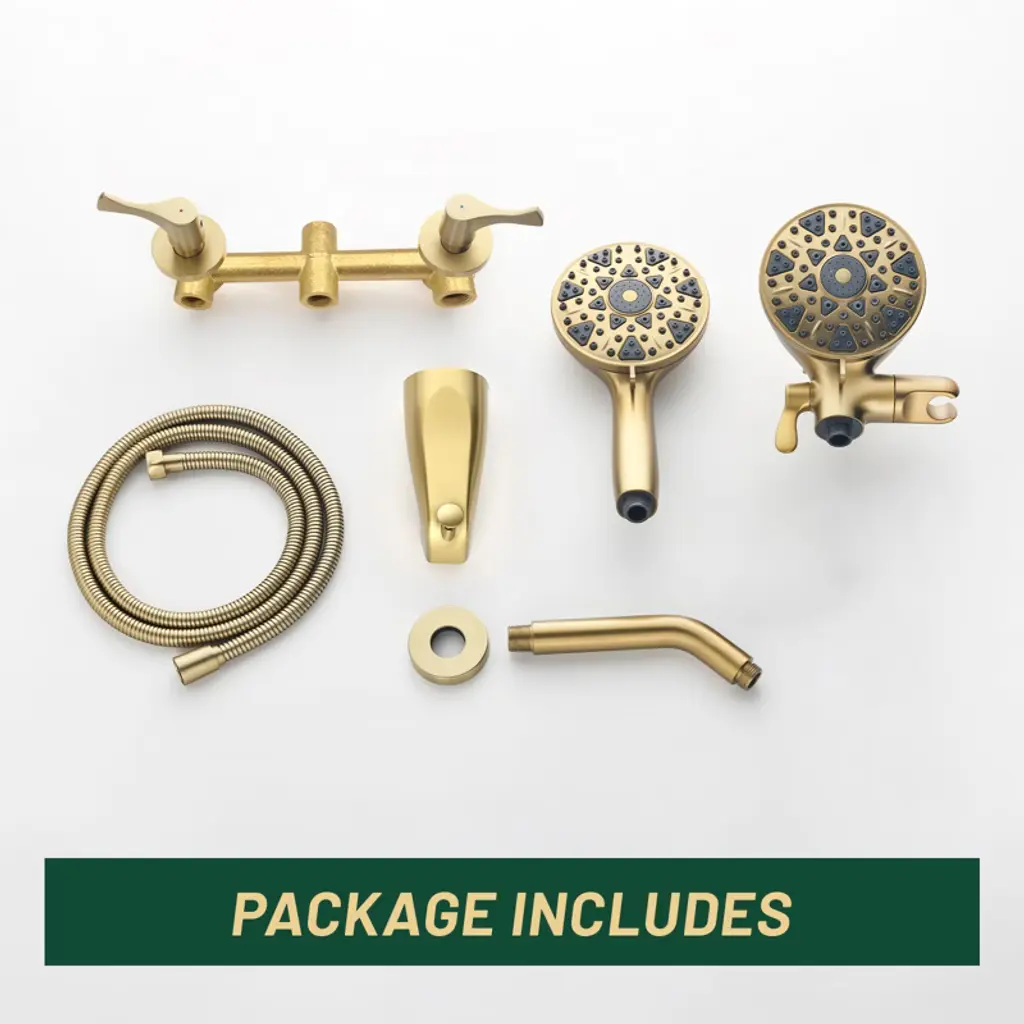 Cobbe Brushed Gold 2-handle Wall Mount Complete Bathtub Shower Trim Kit With 6 Settings Abs Dual Shower Head Tub Spout And 59-inch Hose