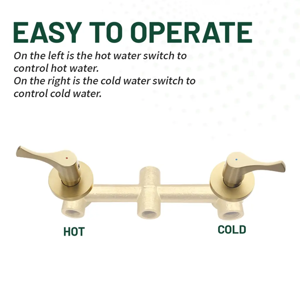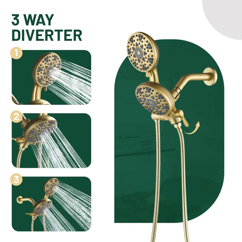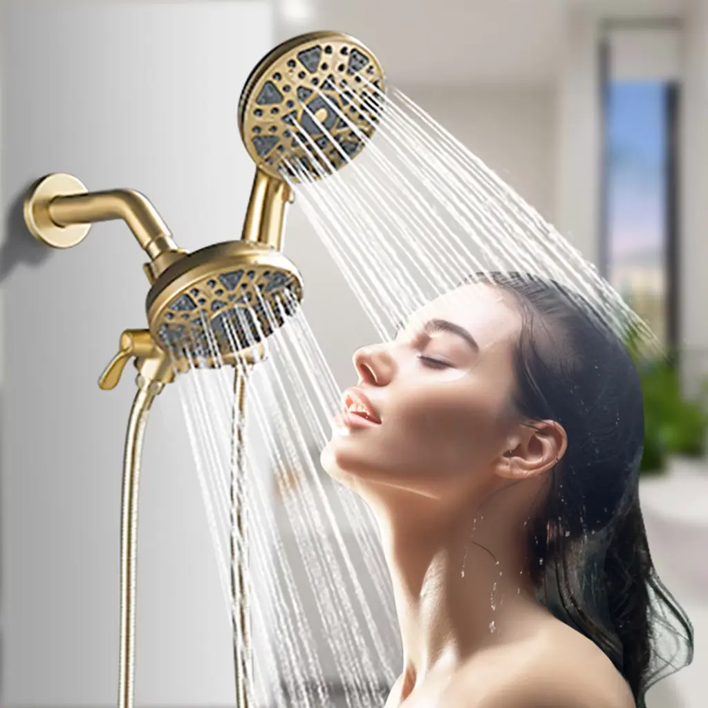 Cobbe Brushed Gold 2-handle Wall Mount Complete Bathtub Shower Trim Kit With 6 Settings Abs Dual Shower Head Tub Spout And 59-inch Hose