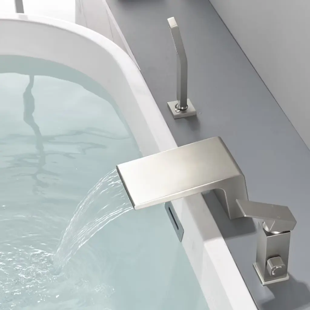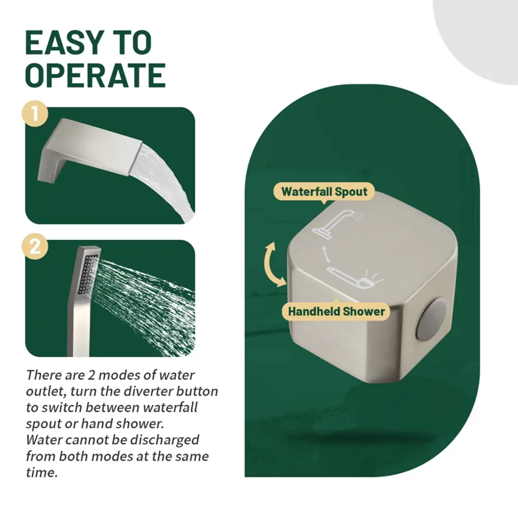 Cobbe Brushed Nickel Bathtub Faucet Set With 3.5-inch Wide Waterfall Spout And Handheld Shower Single Handle 3-hole Installation