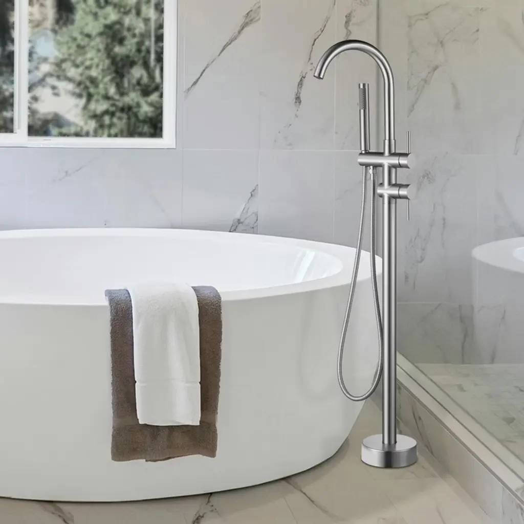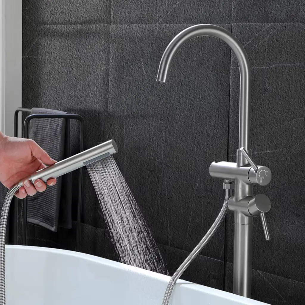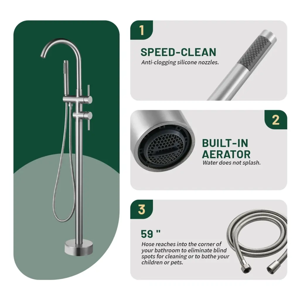 Cobbe Floor Standing Bathtub Faucet Vertical Bathtub Faucet With Handheld Shower And Tub Spout Brushed Nickel