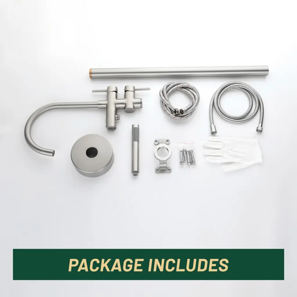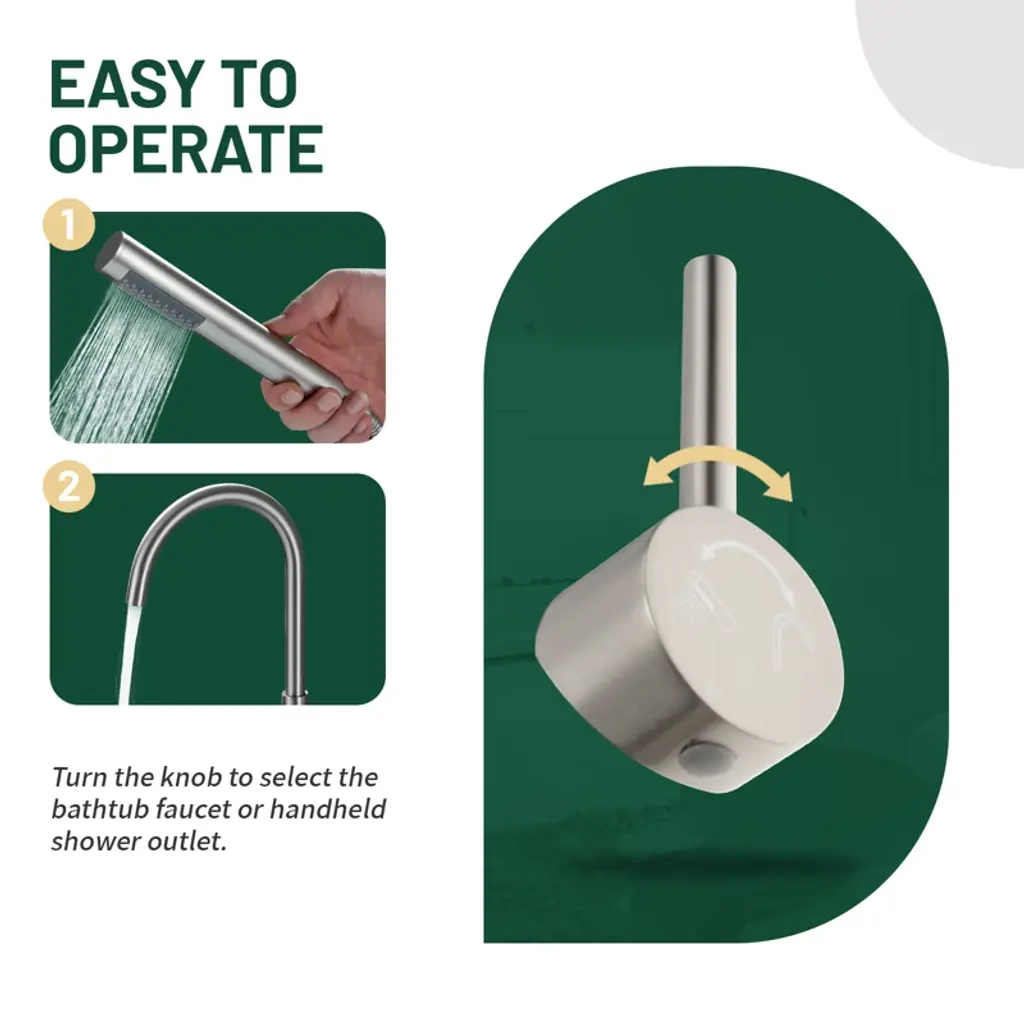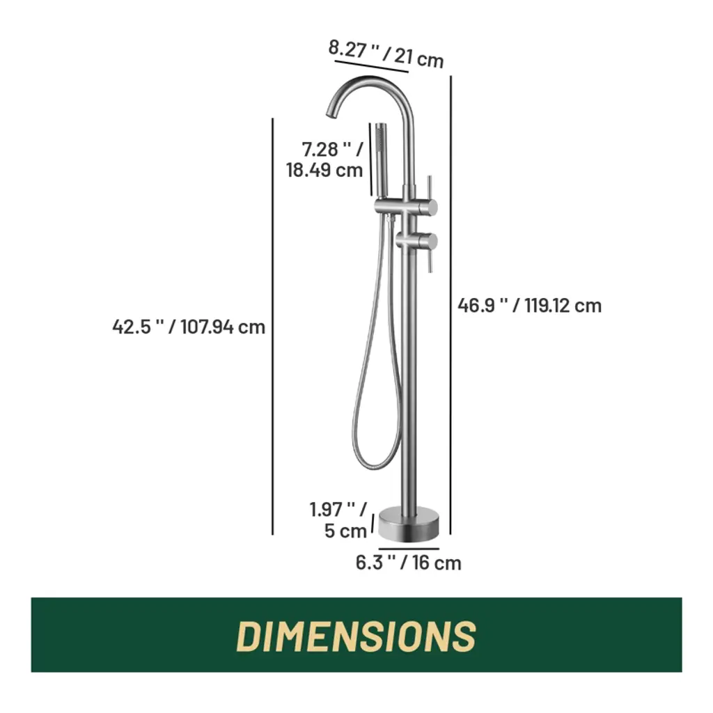 Cobbe Floor Standing Bathtub Faucet Vertical Bathtub Faucet With Handheld Shower And Tub Spout Brushed Nickel