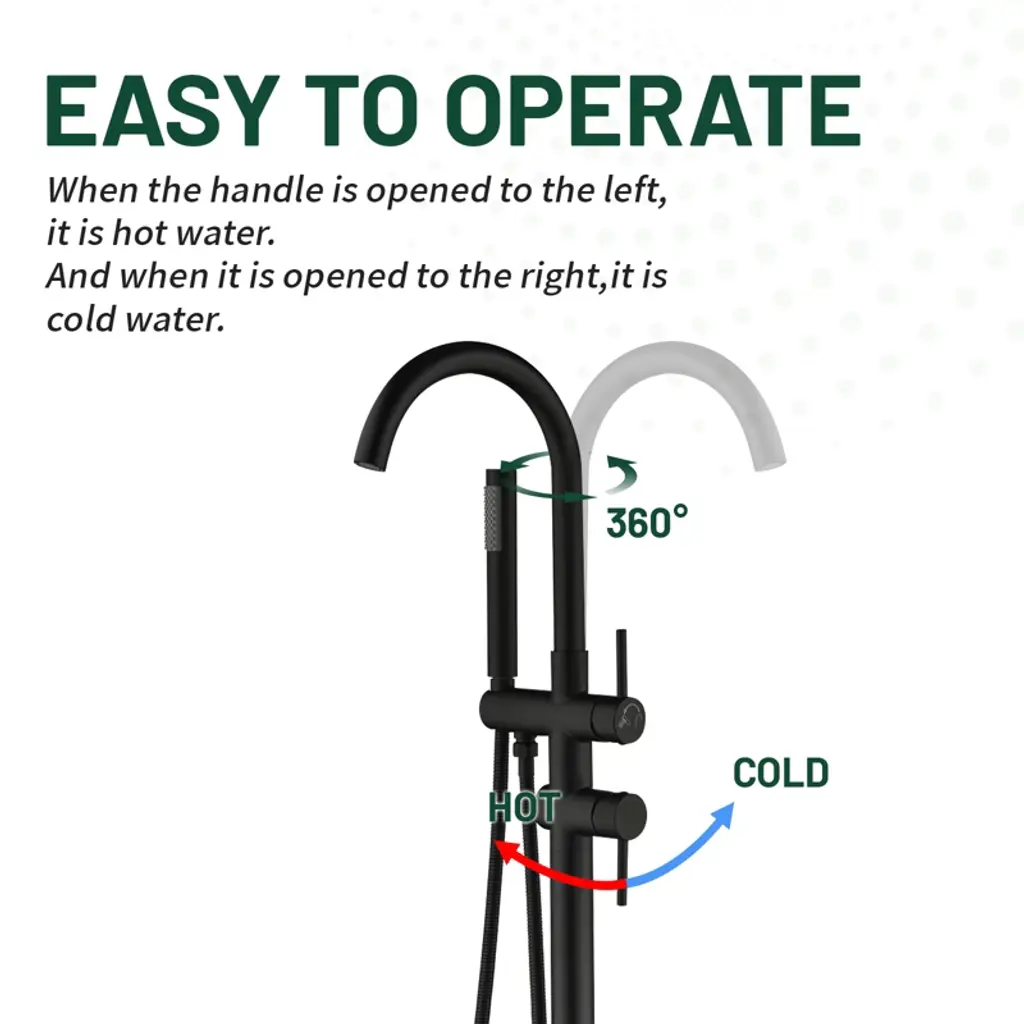 This floor standing bathtub faucet is made of high quality materials, durable and stable performance, which can extend the product life.Meanwhile, the design is elegant, fashionable and beautiful, which can easily fit into different styles of bathrooms, and can bring fashion and functionality to your bathroom.