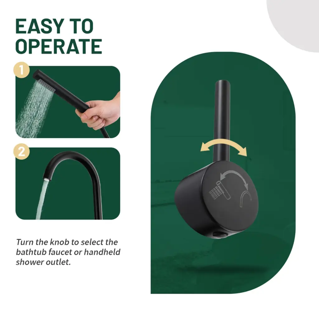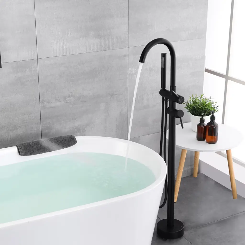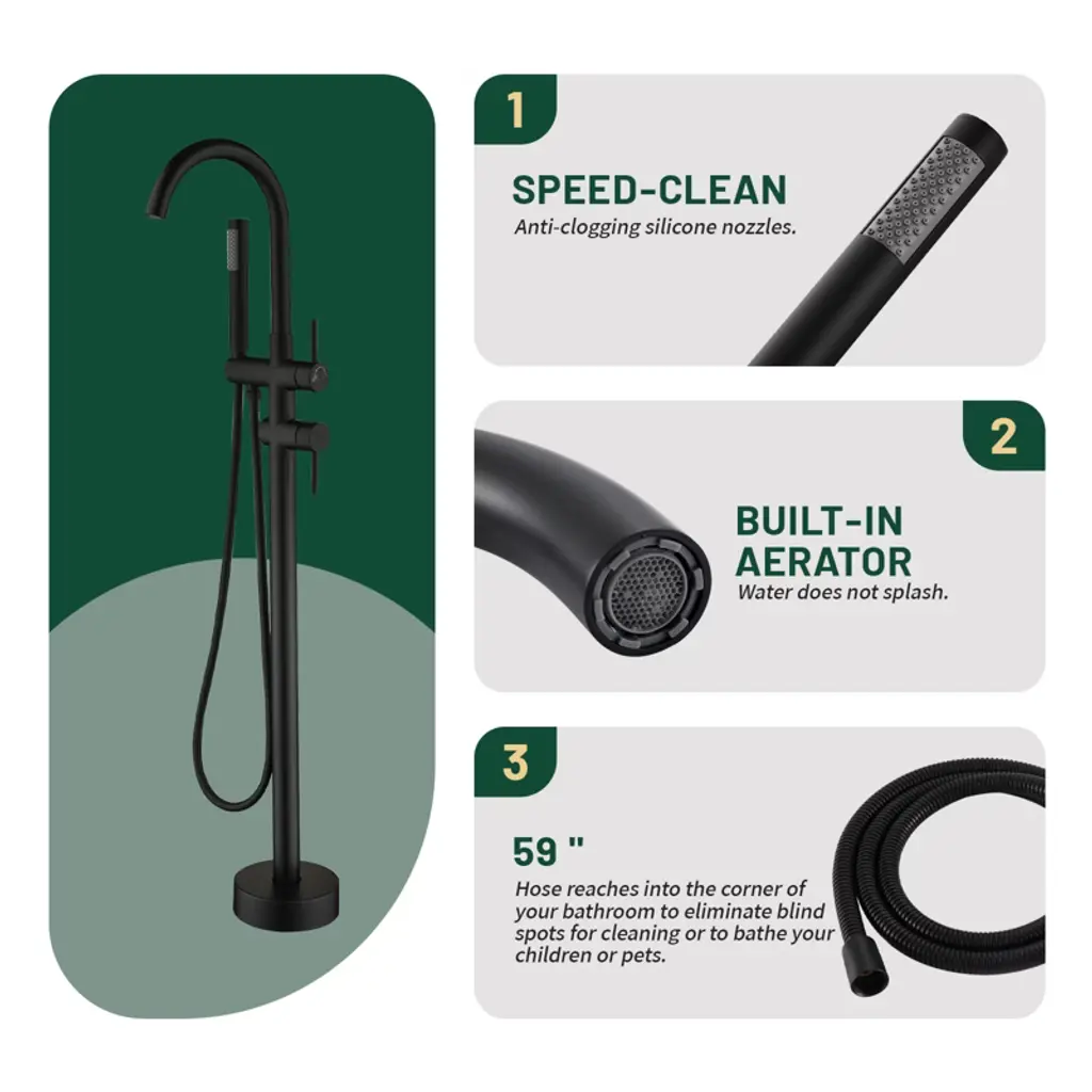 Cobbe Floor Standing Bathtub Faucet Vertical Bathtub Faucet With Handheld Shower And Tub Spout Matte Black