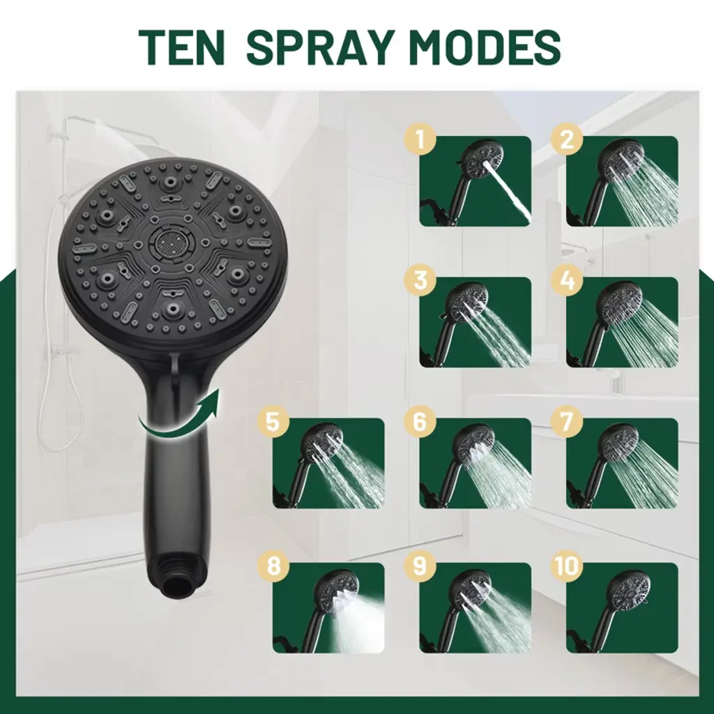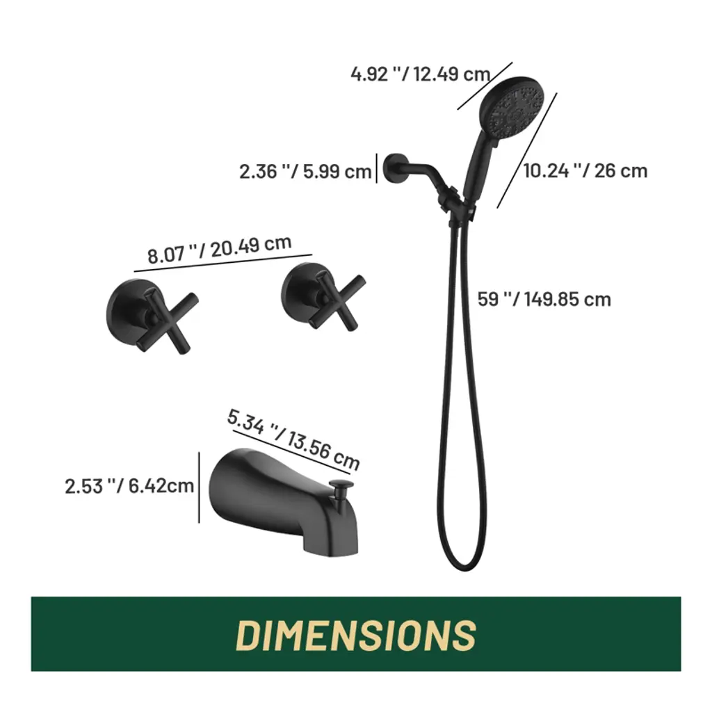 Cobbe Matte Black Bathtub Shower Faucet Set With 10 Settings Abs Handheld Shower And Bathtub Spout Double Handle