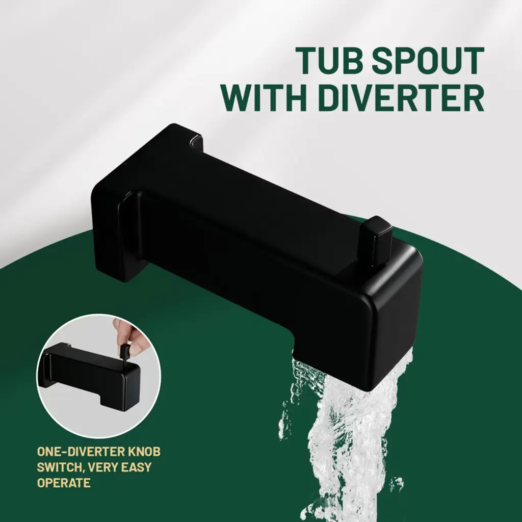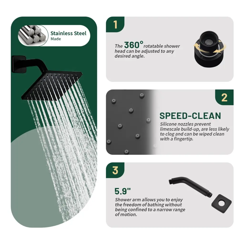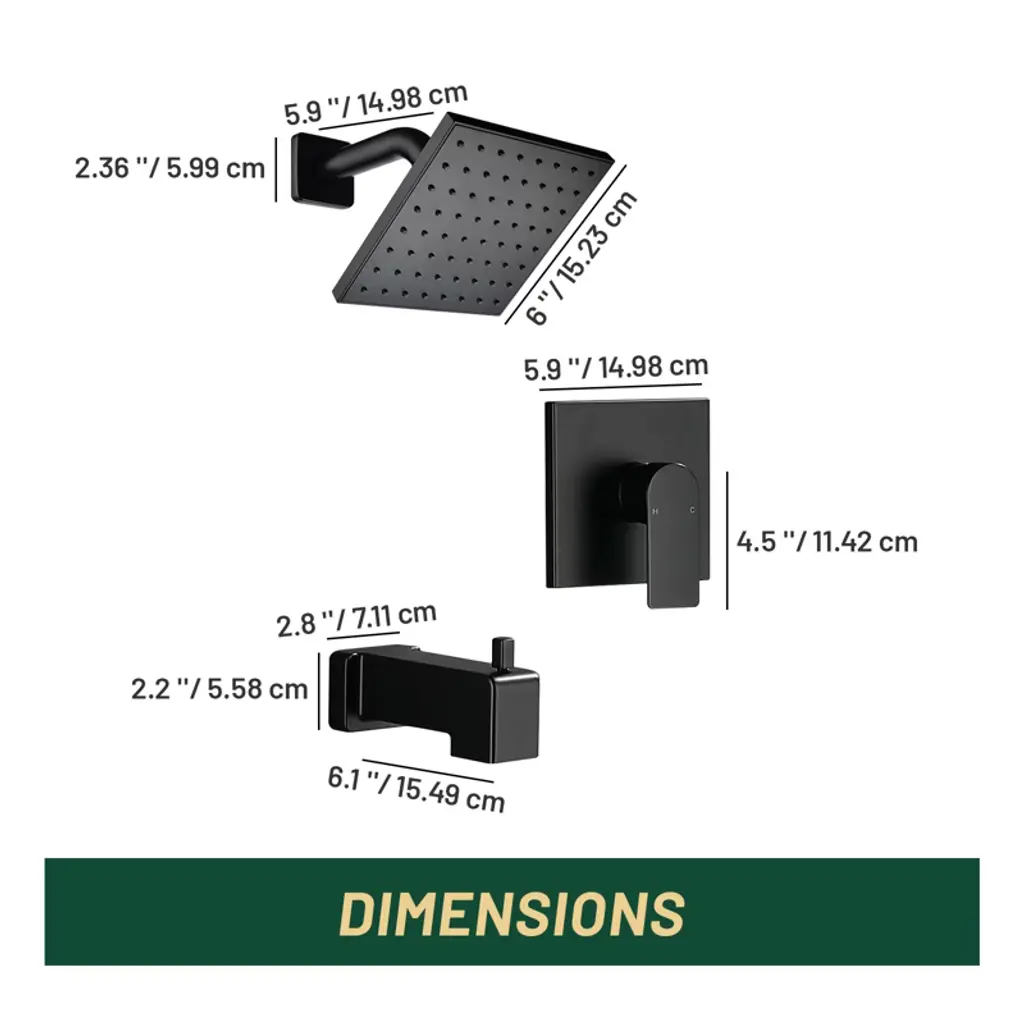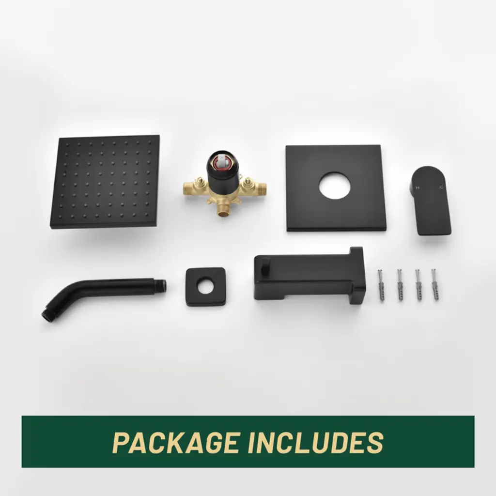 Cobbe Matte Black Rain Shower Faucet With 6-inch Square Shower Head And Bathtub Faucet Wall-mounted Shower And Bathtub Faucet Set Include Valve