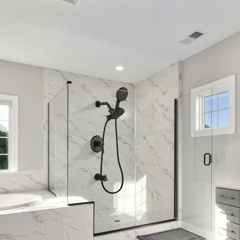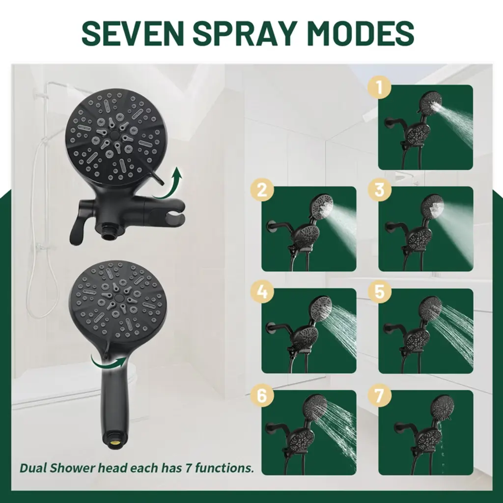 Cobbe Shower Shower System With 7 Settings Abs Dual Shower Head And Bathtub Spout Shower Kit Single Handle Wall Mount Matte Black Shower Set