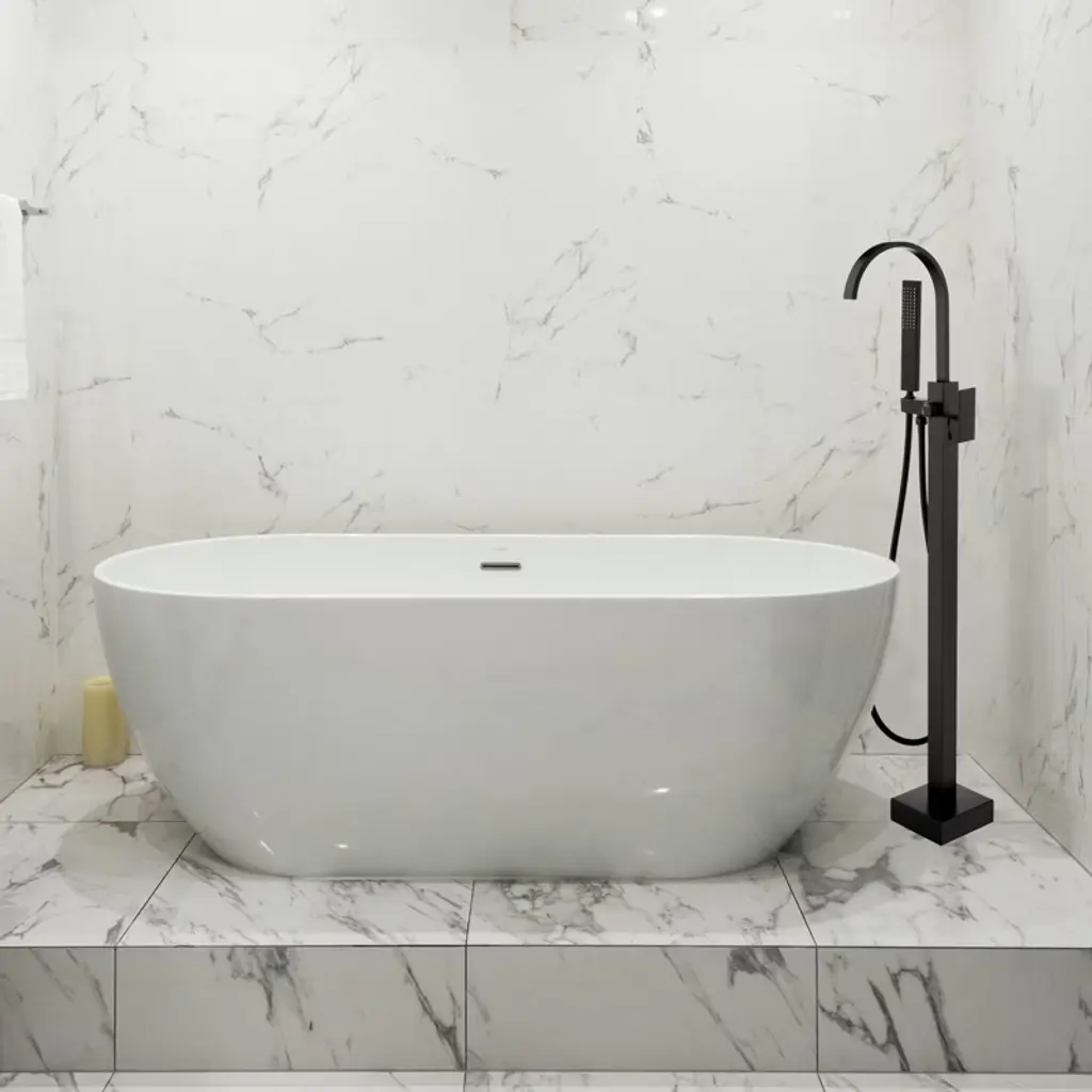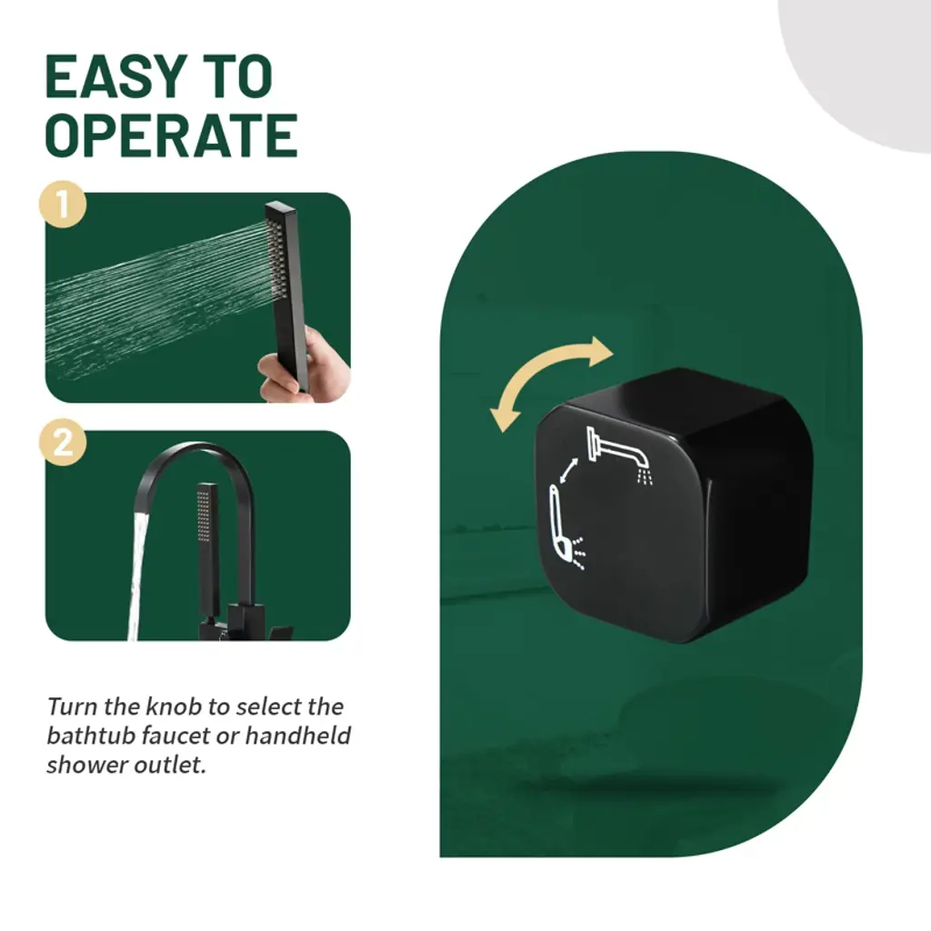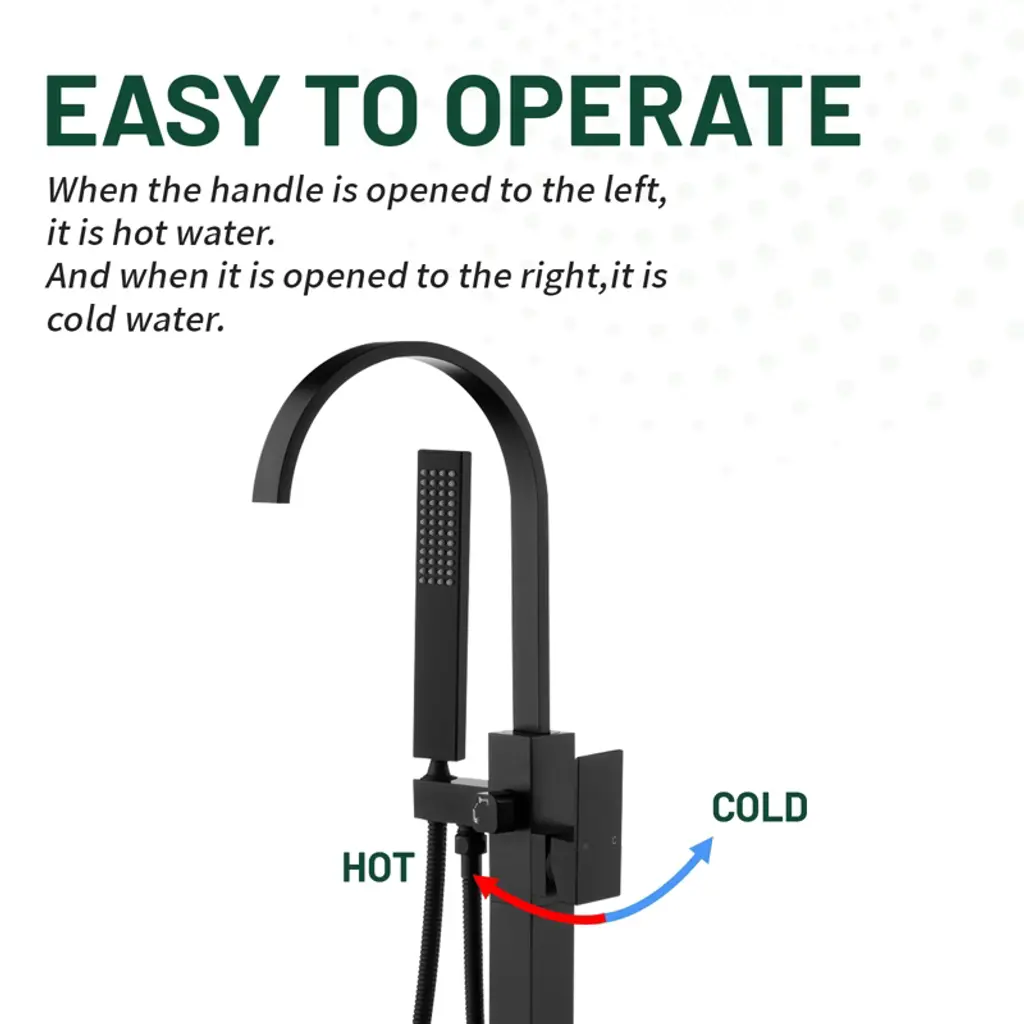 This freestanding floor standing bathtub faucet is made of high quality material, durable and stable performance.Meanwhile, the design is elegant, fashionable and beautiful, which can easily fit into different styles of bathrooms, equipped with a handheld shower, allowing you more freedom and flexibility in bathing.