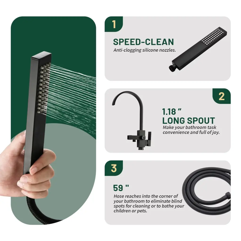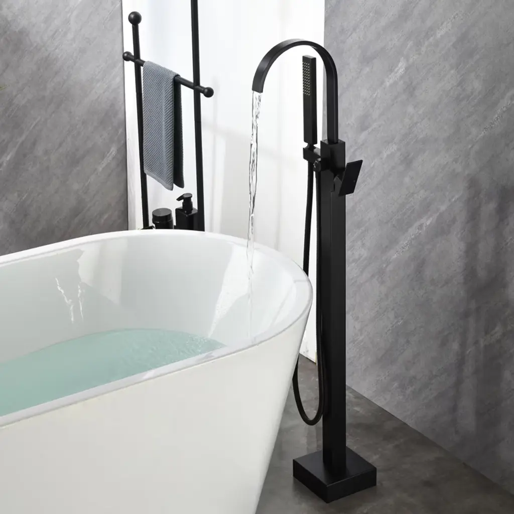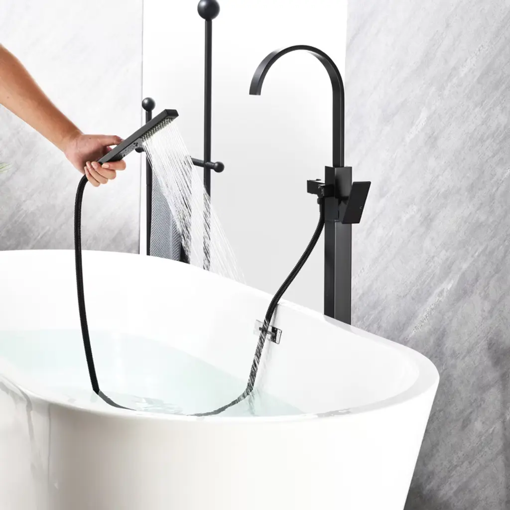 Cobbe Single Handle Freestanding Floor Standing Bathtub Filler Faucet Bathtub Filler With Swivel Spout And Handheld Shower Matte Black
