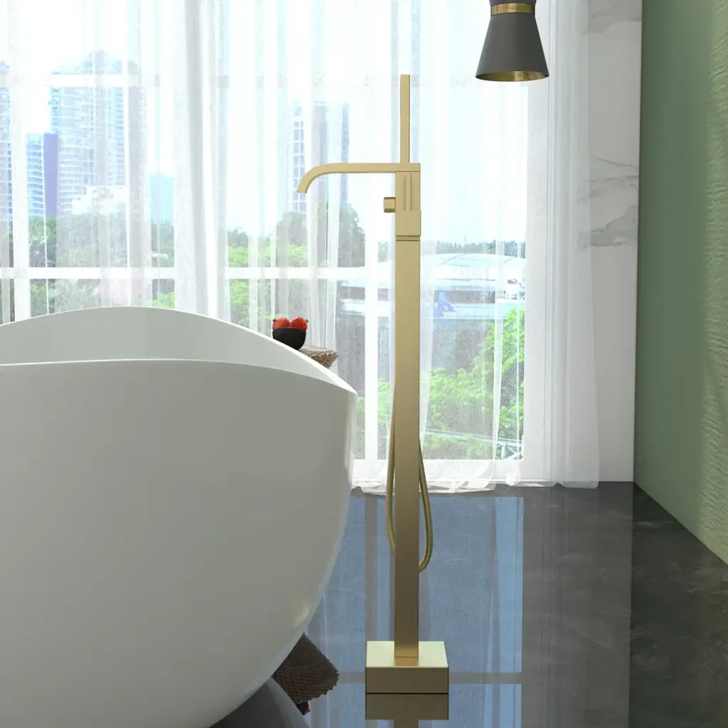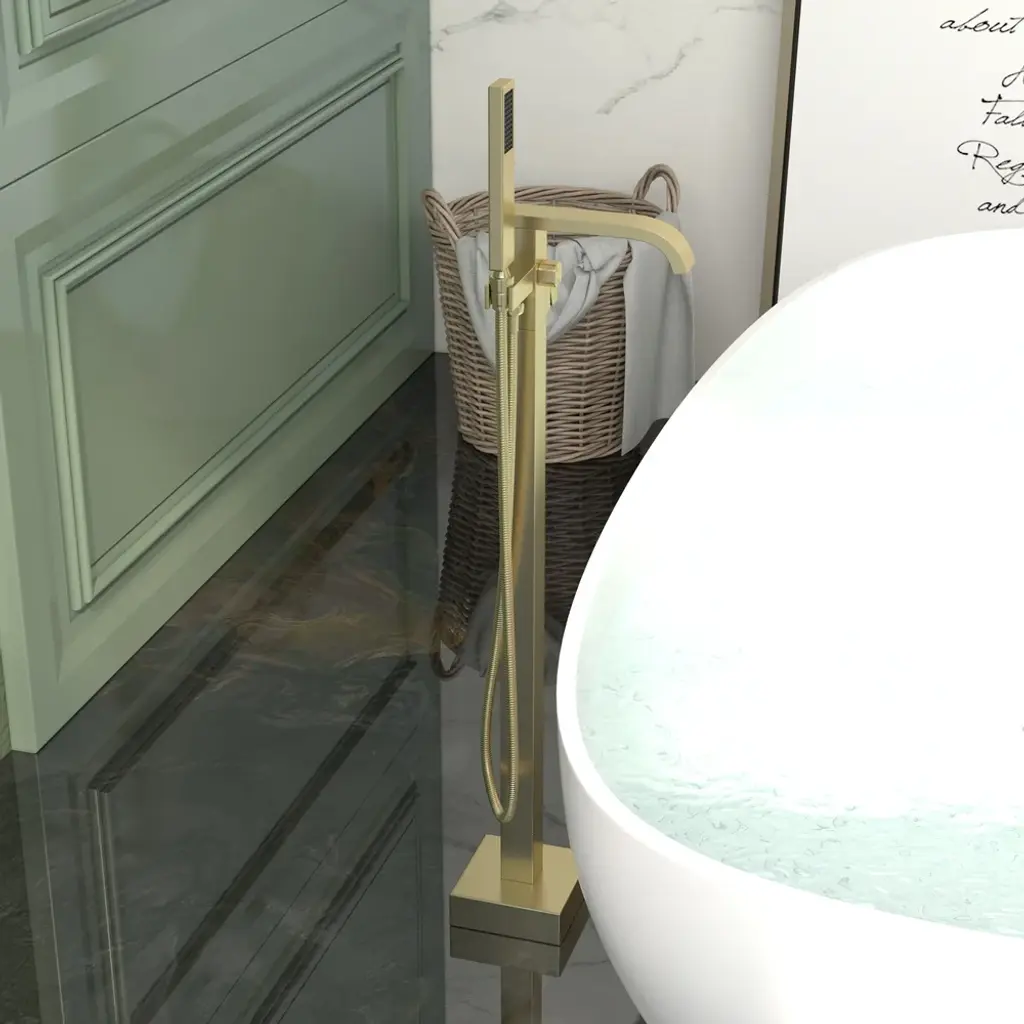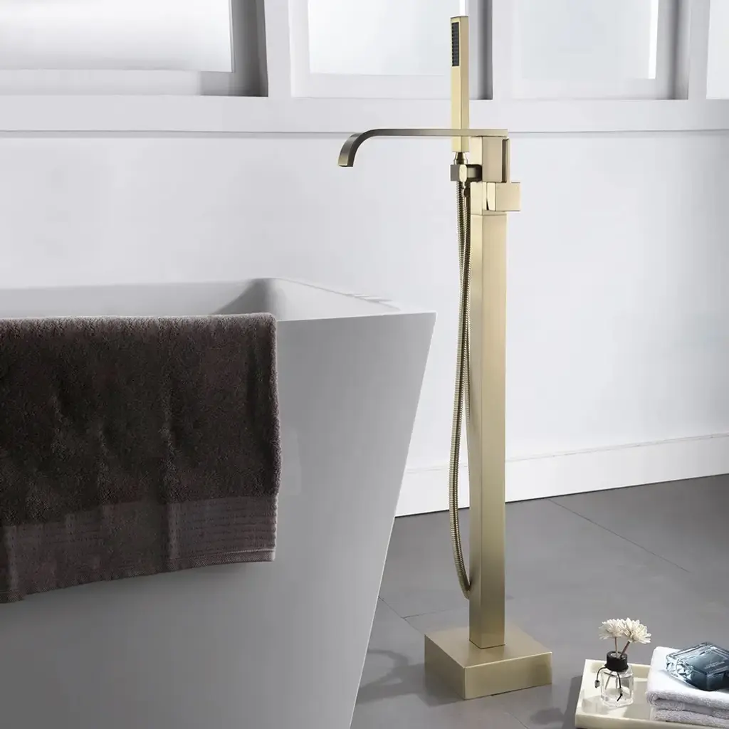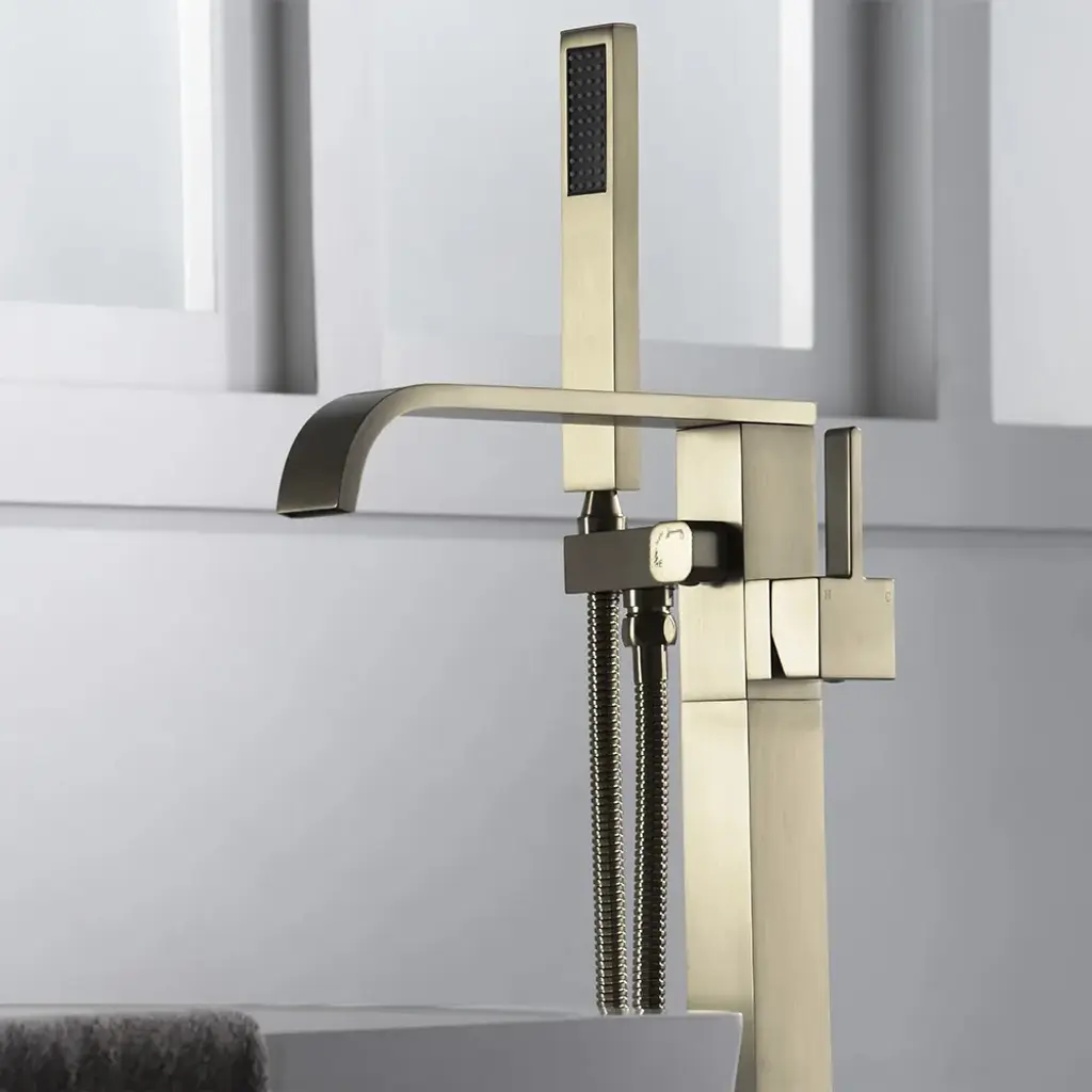 Dree Floor Mounted Tub Filler Single Handle Freestanding Bathtub Faucet Handheld Shower