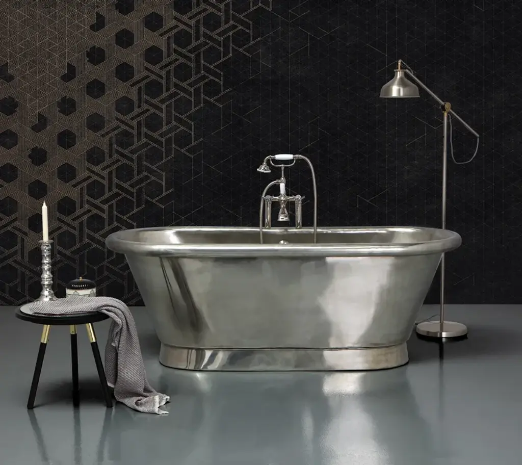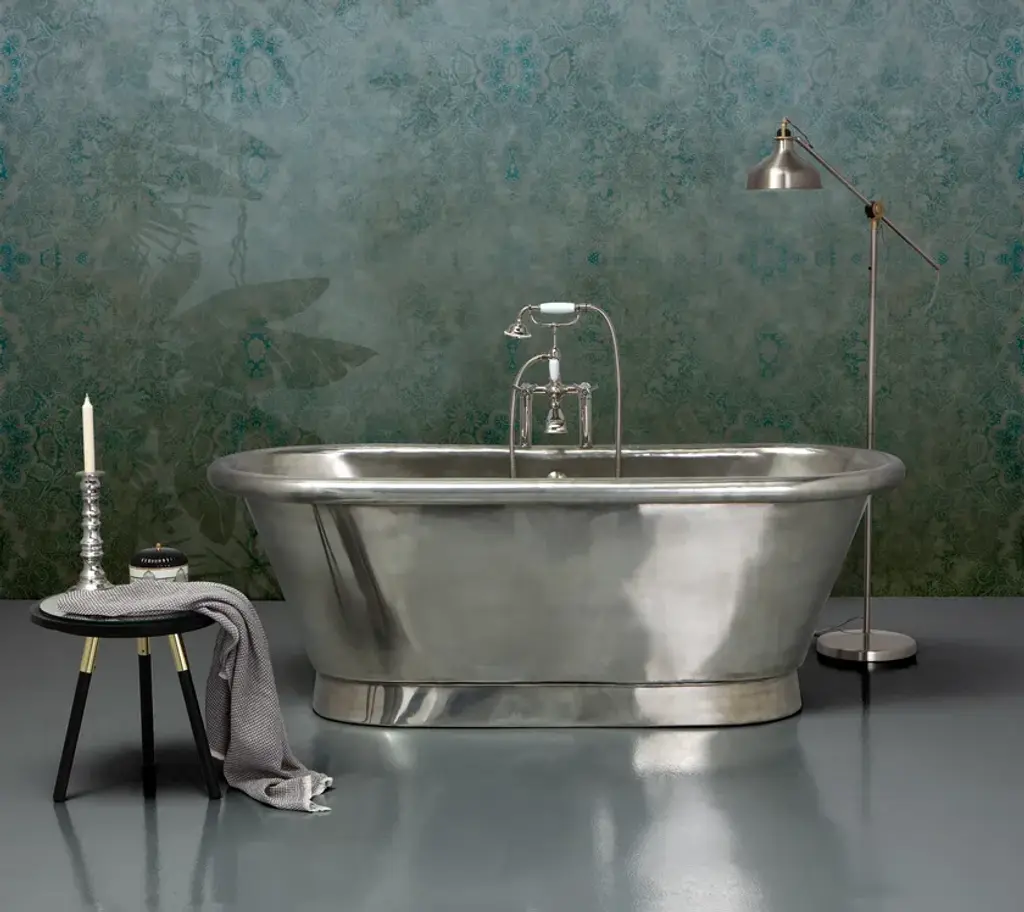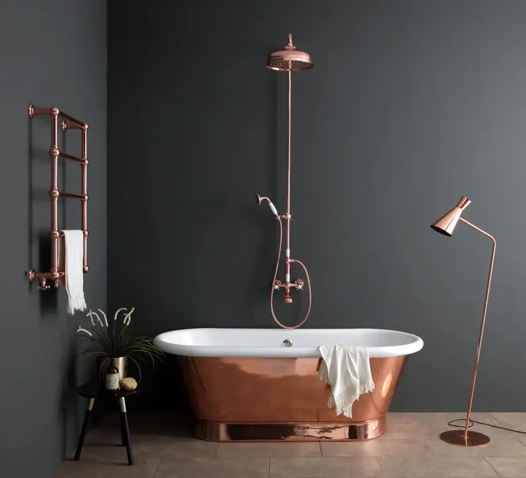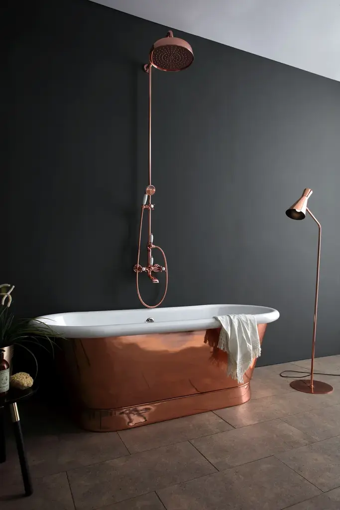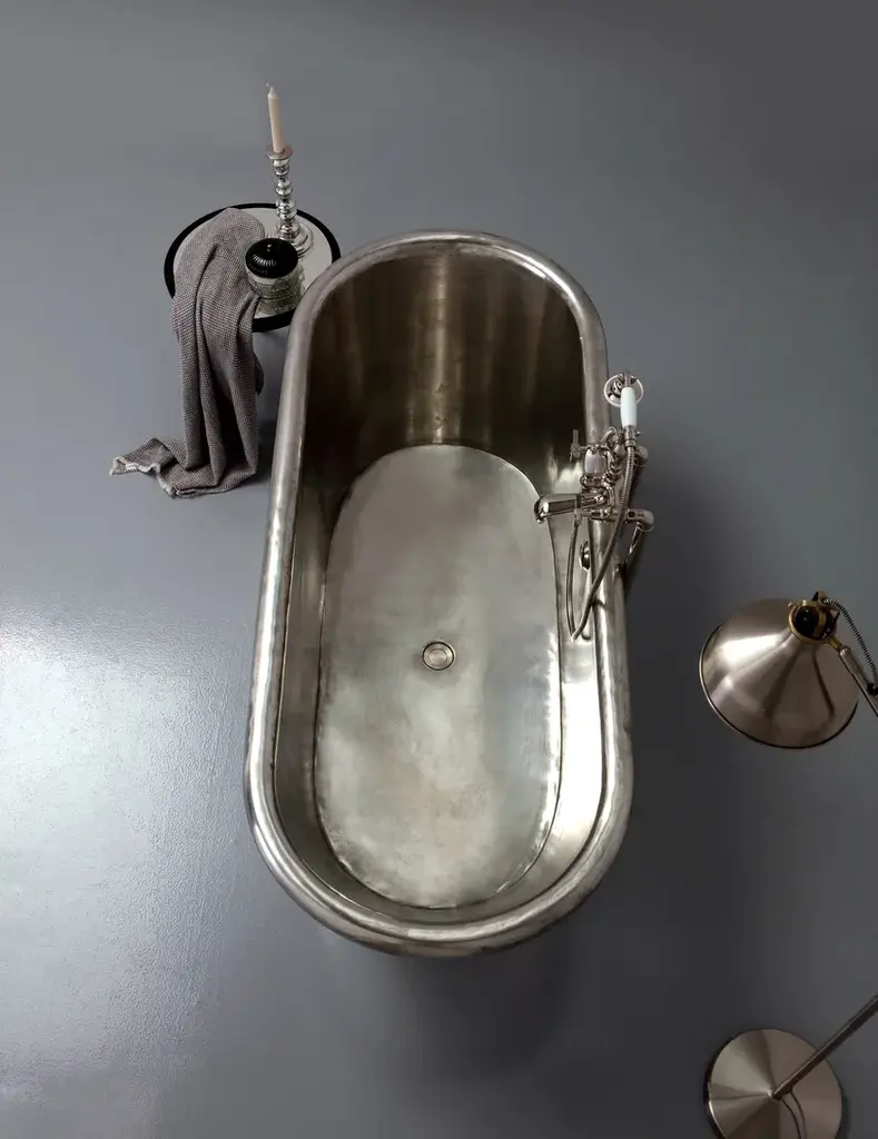 Elegance is a copper tub.Sale version: internal and external copper finishBleu Provence copper tubs are perfect to give charm and personality to your house or hotel. Various metal finishes (inside and outside). Exist in several sizes (from small to large : 150 to 200 cm) and shapes.IMPORTANT NOTICE ON CAST IRON BATHTUBS:- All bathtubs are in cast iron and enameled in Titanium.- The feet are made of cast iron and may have a white, colored, chrome or gold finish, nickel, nickel matt.- Colors: for the outside, all colors are possible. Just give us the desired RAL or NCS code.- Bathtubs prices are without waste or syphon.- On request, we can make a hole for the taps.