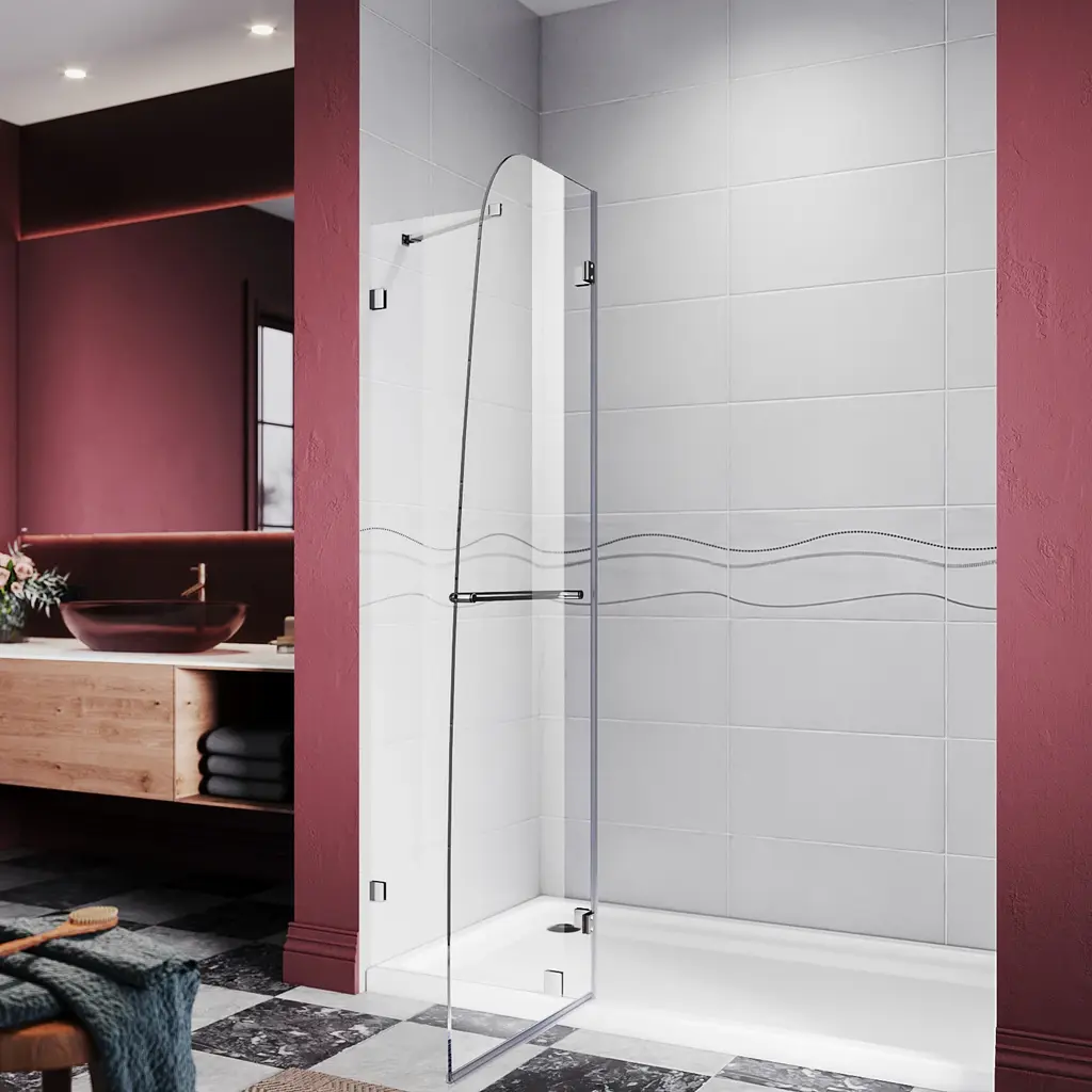 Enhance your bathroom with this stylish Frameless Hinged Bathtub Glass Panel. This sleek bathtub door features a fixed panel, and a swinging door that opens easily with a long handle. It's a great replacement for a shower curtain and adds a beautiful touch to your bathroom. The package comes with an easy-to-follow instruction manual and is carefully packaged for safe delivery. Features: