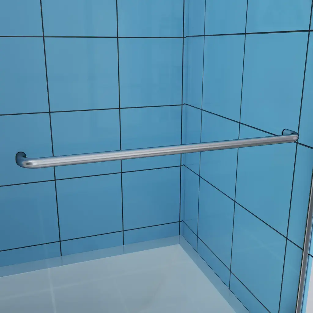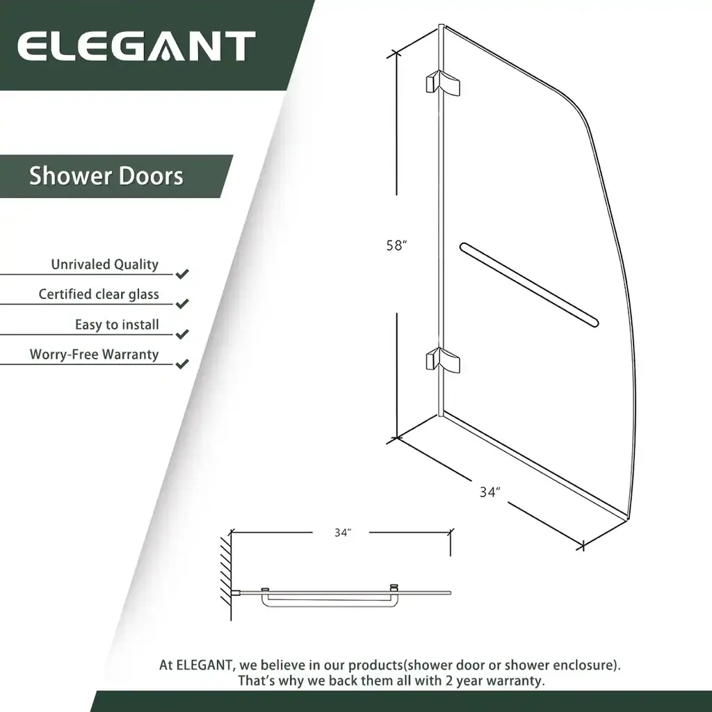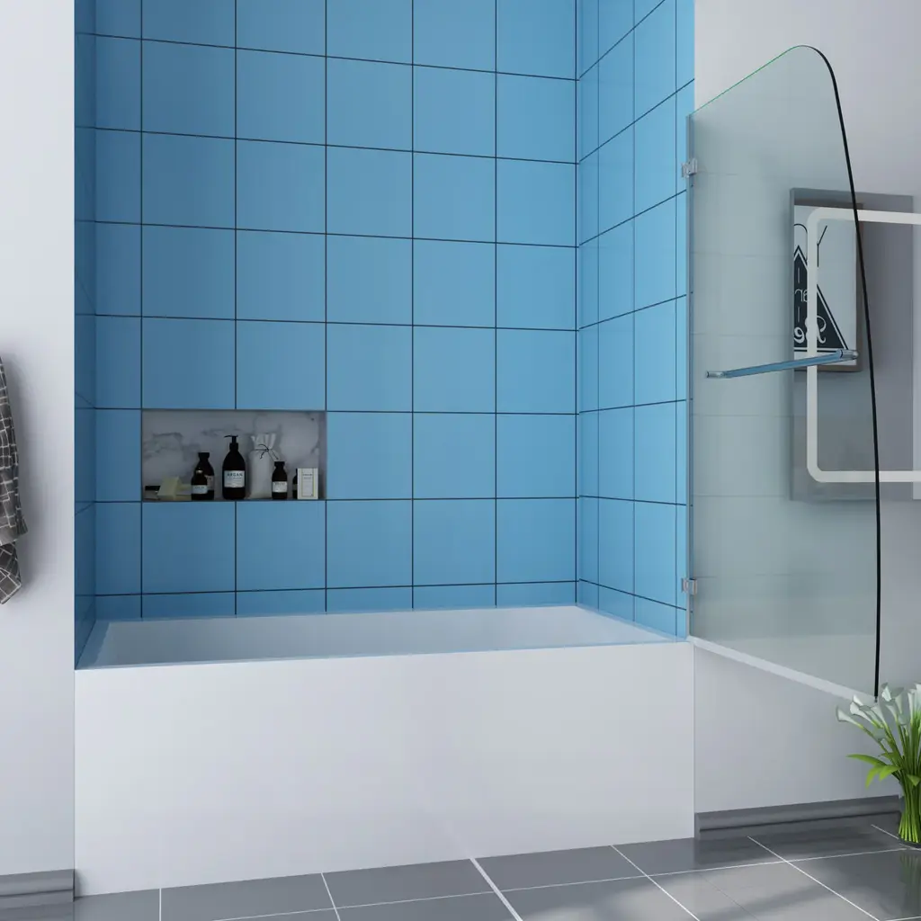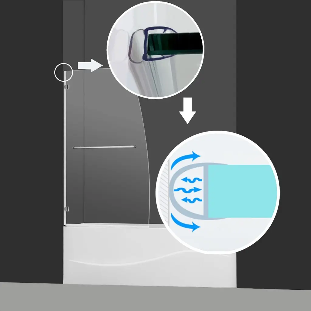 Elegant Frameless Pivot Hinged Fixed Bathtub Panel 5/16" Clear Tempered Glass Door Rotated 90° Shower Door For Bathtub - 34"w X 58"h - Chrome