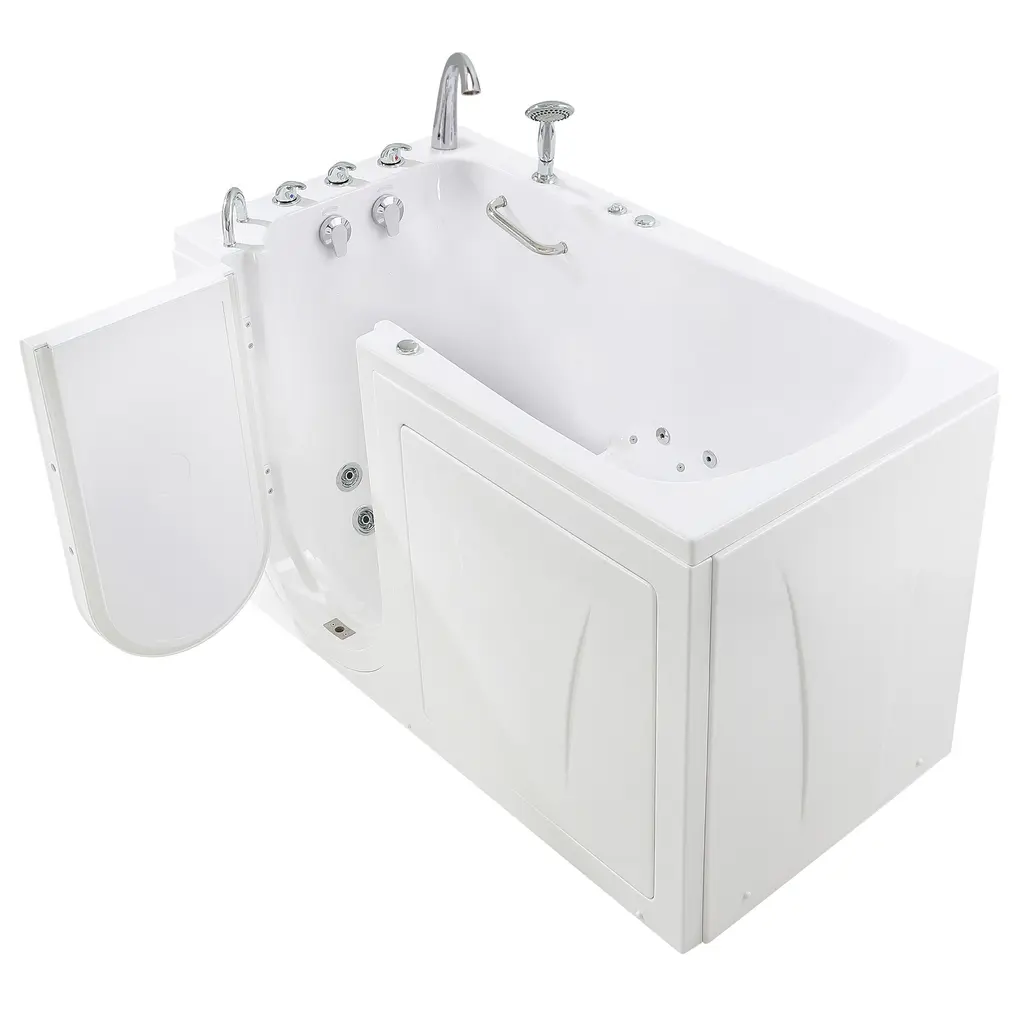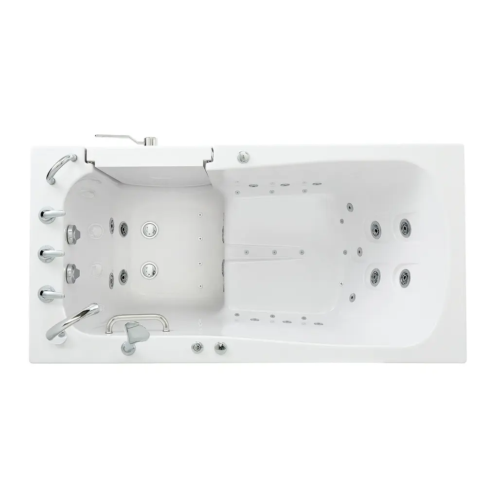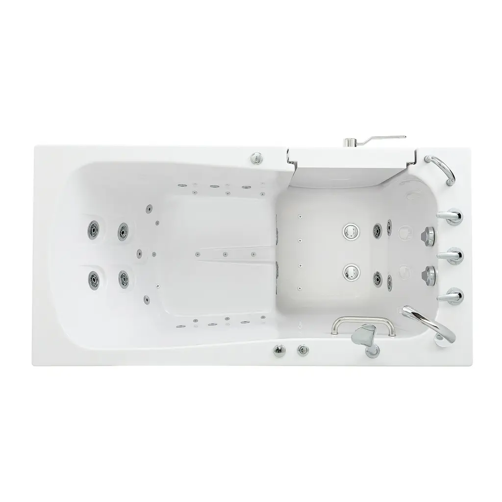 Ella Big4one 33"x66" Walk In Bathtub, Air + Hydro + Independent Foot Massage, 5 Piece Fast Fill Faucet, Dual 2" Drains - Heated Seat - Left Door