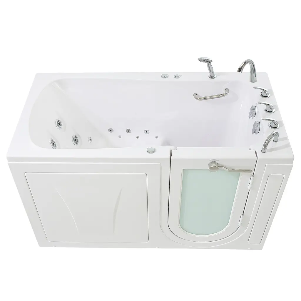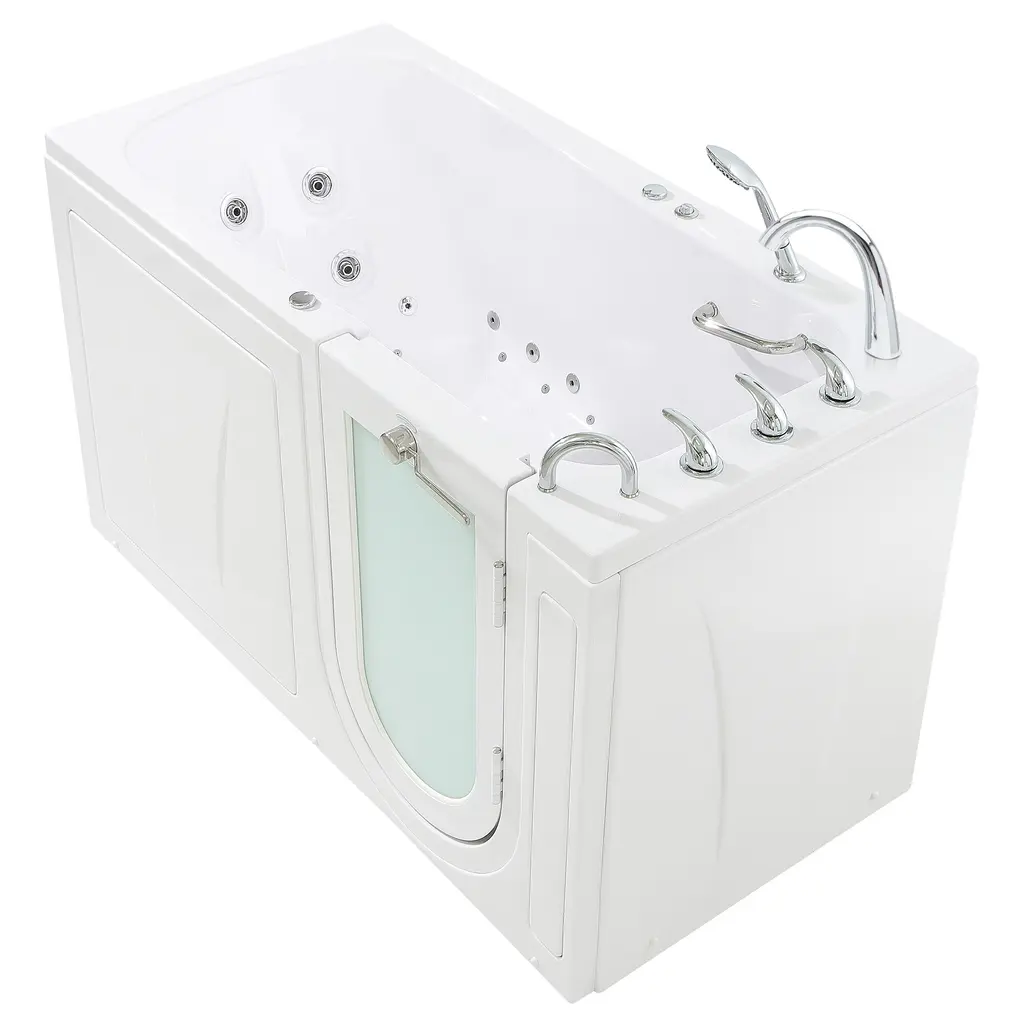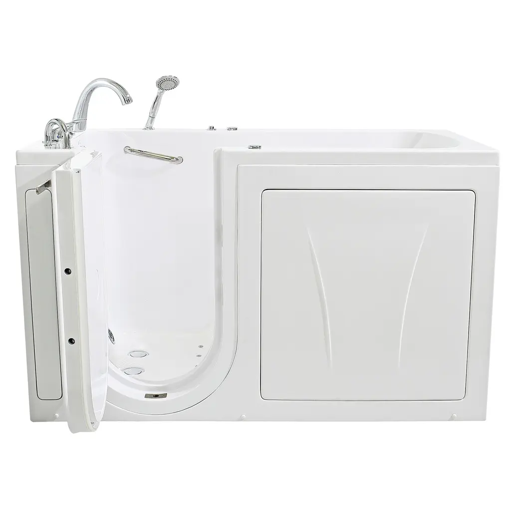 Ella Big4one 33"x66" Walk In Bathtub, Air + Hydro + Independent Foot Massage, 5 Piece Fast Fill Faucet, Dual 2" Drains - Heated Seat - Left Door