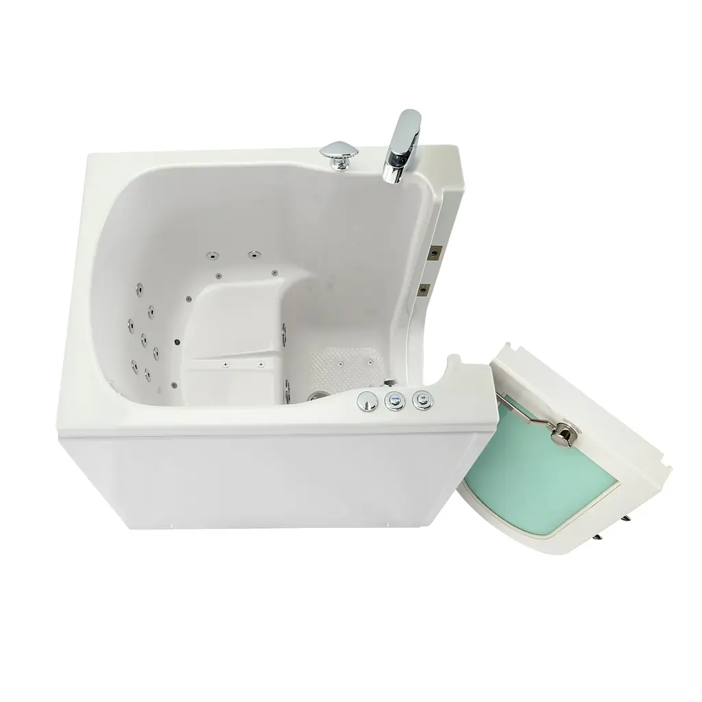 Ella Front Entry 32"x40" Acrylic Hydro Massage Walk-In Bathtub With Outward Swing Door 2 Piece Fast Fill Faucet 2" Drain - Hydro Massage - Right