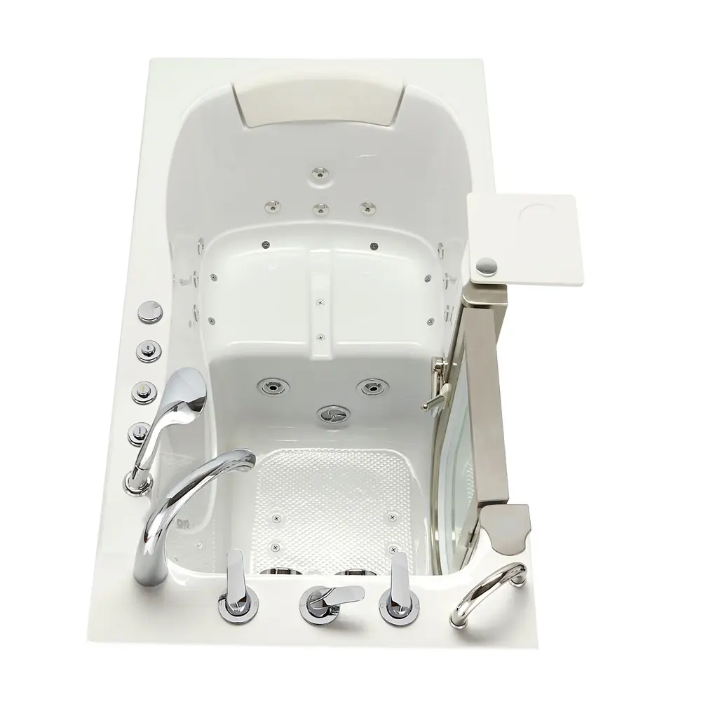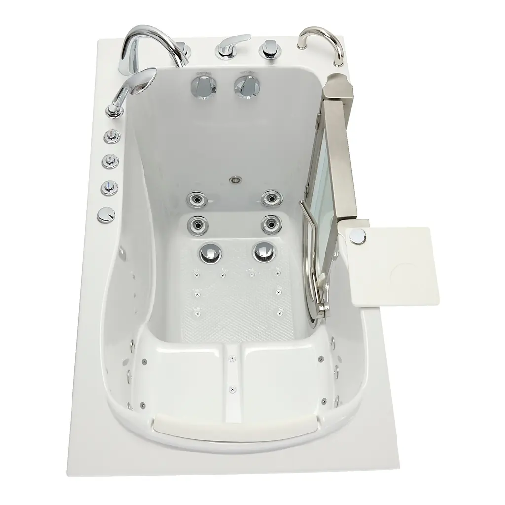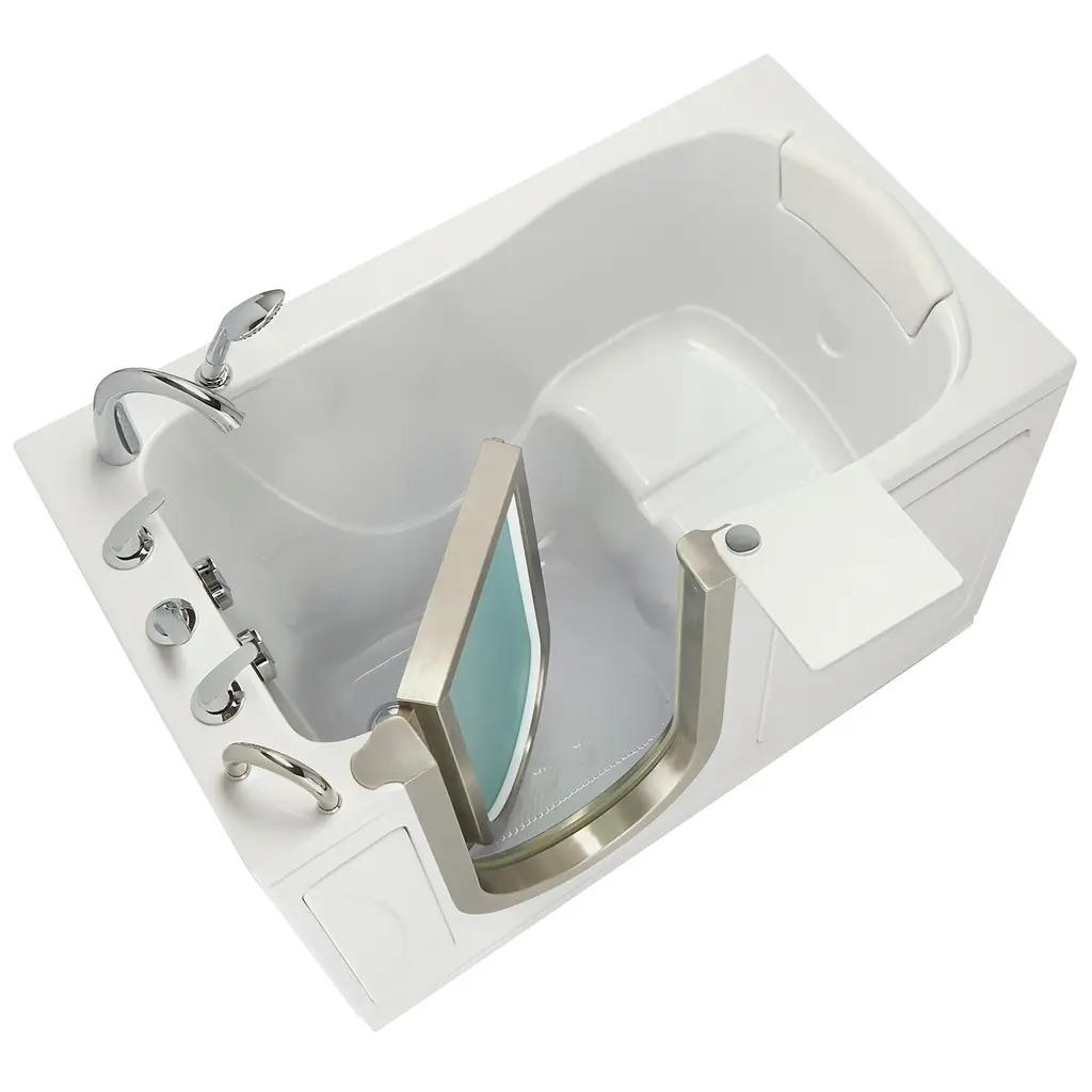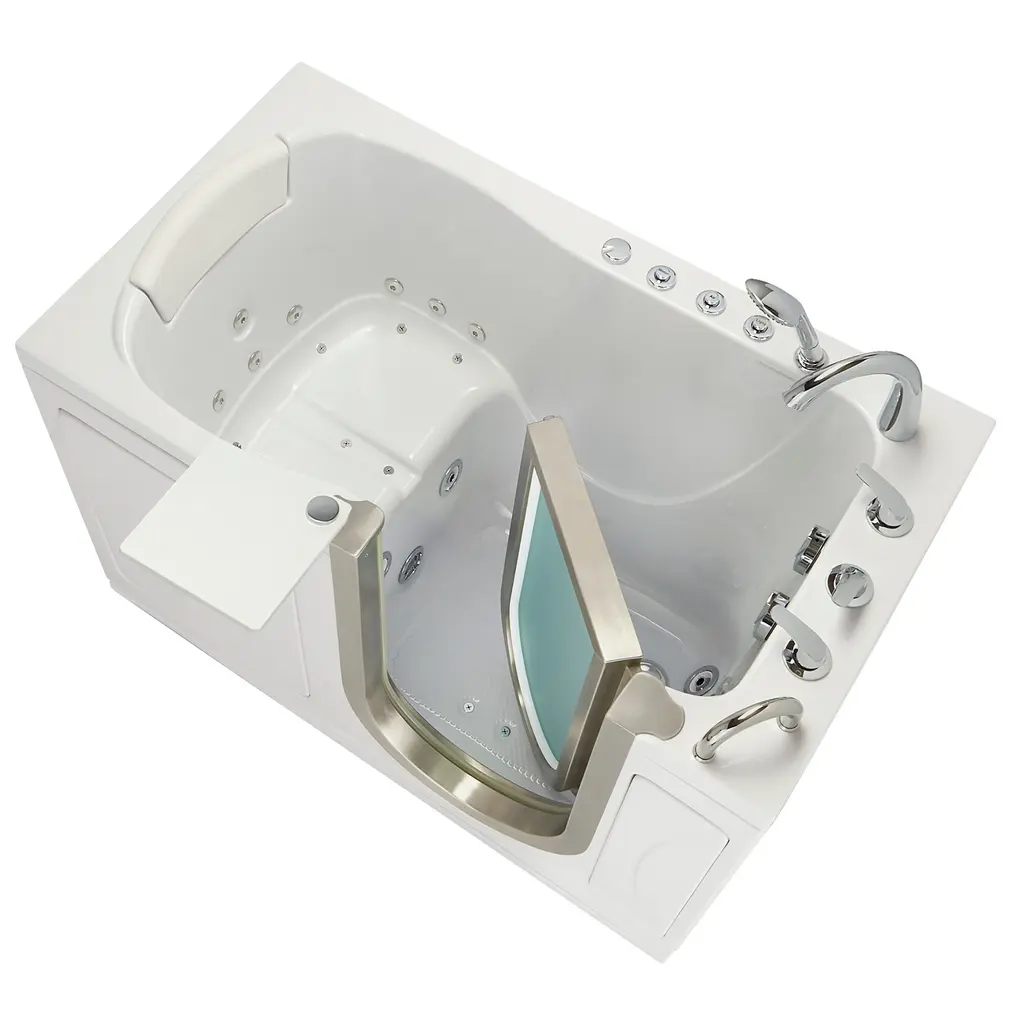 Ella Petite 28"x52" Acrylic Walk-In Bathtub With Inward Swing Door, 5 Piece Fast Fill Faucet, 2" Dual Drain - Left Door + Heated Seat - Soaking