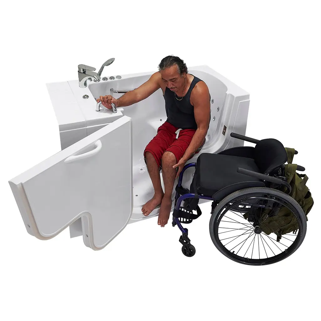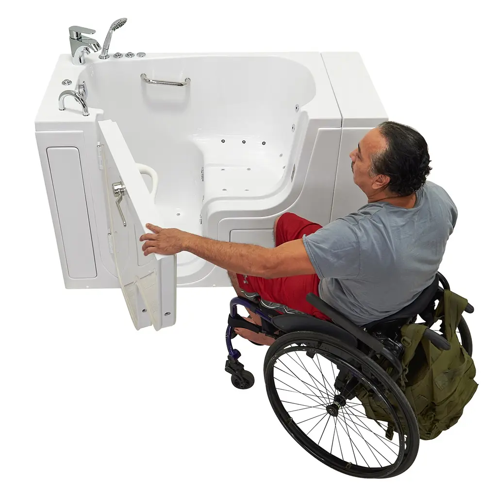 Ella Wheelchair Transfer 26x52 Acrylic Hydro Massage Walk-In Bathtub & Outward Swing Door Fast Fill Faucet 2" Dual Drain - Hydro Massage - Left Door