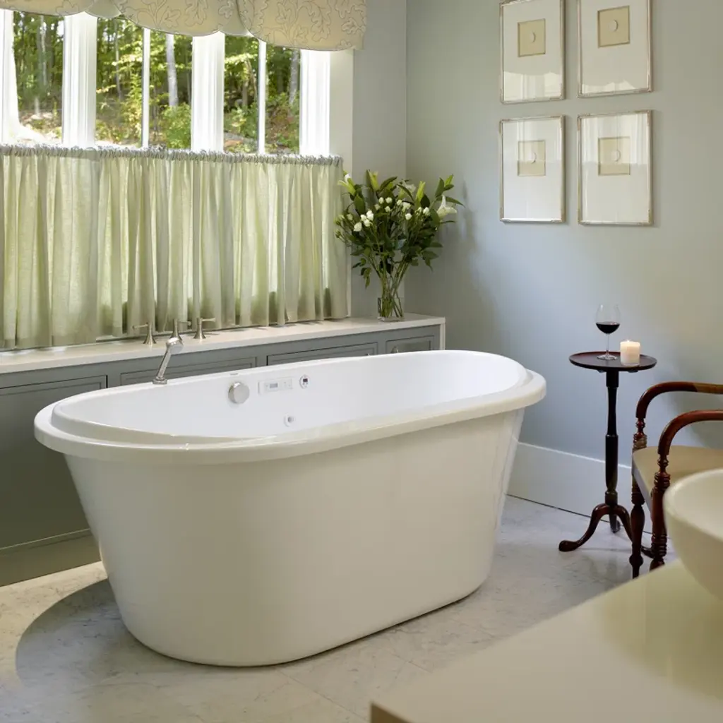 The Harmony Soaker Tub by MTI Baths accents the modern bathroom with its minimalist look and fine craftsmanship. Arm contours and increased insulation result in effective and enhanced hydrotherapy. The Designer Collection by MTI Baths is a selection of thoughtfully designed and handcrafted products, manufactured in DoloMatte® or Acrylic CXL®, which are both attractive, durable, and easy to maintain.