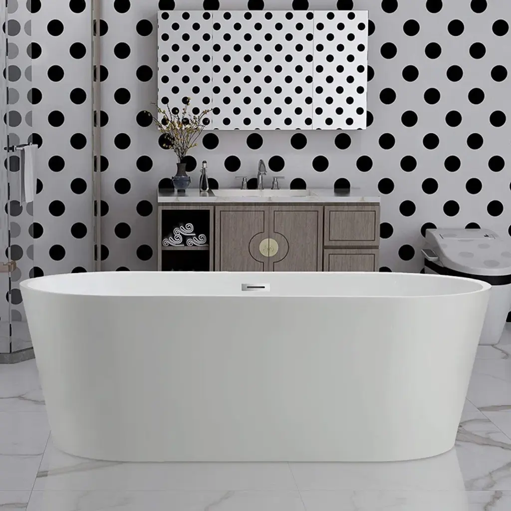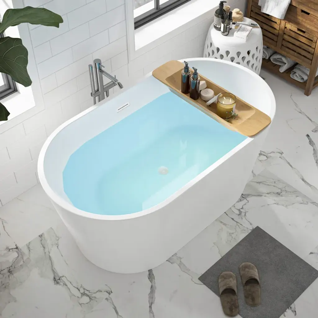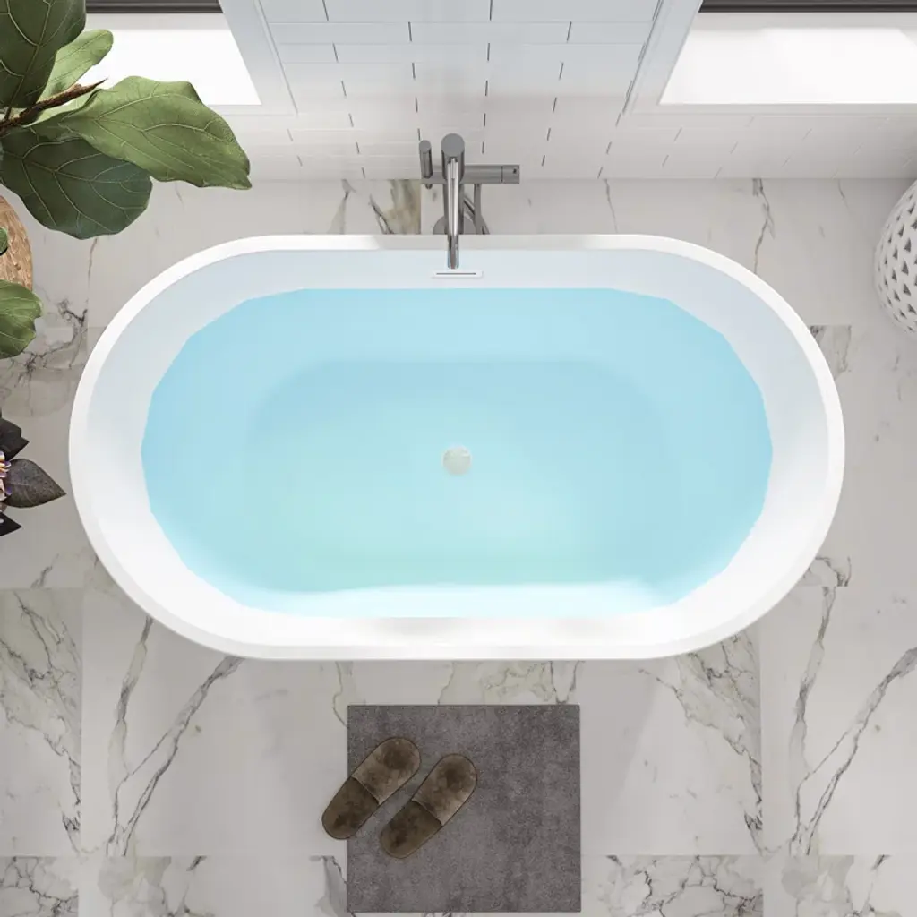 Recline + unwind. This slipper bathtub is designed for ultimate comfort with its oval shape and self-leveling base. Crafted from durable acrylic, it's easy to clean with just mild soap and warm water. Perfect for residential or non-residential use.