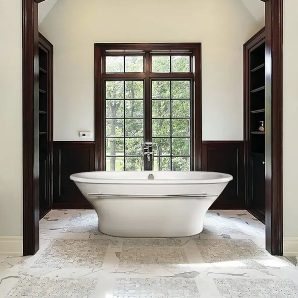 This French-inspired freestanding tub is a breed all its own. Owing to its distinctive shape, the Kellie presents a trifecta of winning qualities: a floor-saving footprint, generous soaking depth, and statement-making style. The option to add exterior grab bars adds even more functionality.