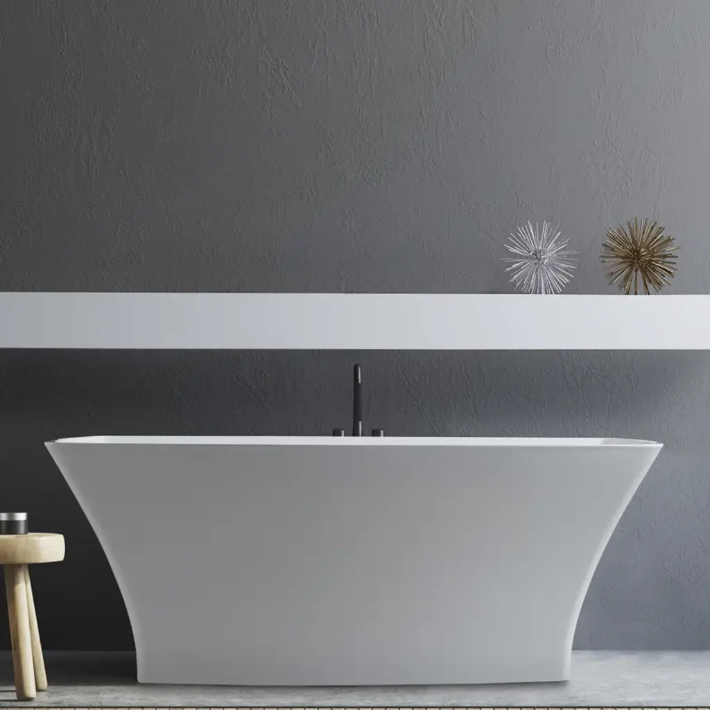 Natural minerals, science and artistry are combined to produce design-savvy products in the Acquabella collection that will satisfy tastes traditional, transitional and contemporary. Cast engineered stone with a chemically-bonded coated finish creates products that are beautiful, functional, and durable. Experience unparalleled relaxation with MTI's Air Massage System featuring 20 nearly invisible air jets that blend seamlessly into the tub floor, delivering optimal therapeutic benefits and ultimate comfort.Indulge in luxury with our elegant rectangle tub, featuring concave ends and a flat rim, a deep bathing well, lumbar support, and standard integrated internal overflow and white toe-tap drain, creating the perfect ambiance for a truly relaxing bathing experience.