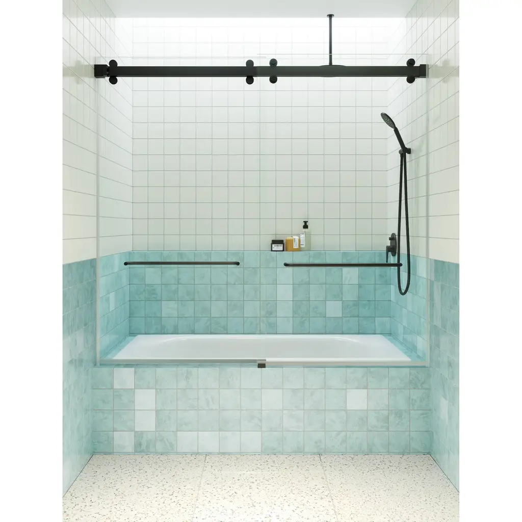 Polaris 60 In. X 66 In. Fully Frameless Glass Sliding Bypass Bathtub Doors With Square Hardware - Matte Black