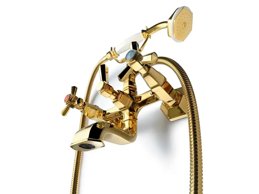 The Roma line has never been out of production since 1926. How many products in the world can claim such a record? Its classic design and absolute technical reliability have led to its success and it has always been brought up to date without ever betraying the original design. Perfectly at home in the most modern settings, the Roma is still today the “tap” par excellence.Roma 3267 Exposed wall mounted bath & shower mixer, with manual return diverterSupplied without shower componentsRoma 3267RG Bath & shower mixer with RG unions for bath deck mounting, with manual return diverterSupplied without shower componentsRoma 3267/302/6 Exposed wall mounted bath & shower mixer, dual use hand spray head, low telephone-type cradle, directional upper wall bracket, 150 cm flexible shower hoseRoma 3267/305/6 Exposed wall mounted bath and shower mixer, dual use hand spray head, low telephone-type cradle, directional upper wall bracket, 150 cm flexible shower hoseRoma 3267RG305/6 Bath and shower mixer with RG unions for bath deck mounting, dual use hand spray head, low telephone-type cradle, directional upper wall bracket, 150 cm flexible shower hoseTo order the Roma shower handset in black or white plastic, add letter N (black) or B (white) to end of code noRoma 3267/306 Exposed wall mounted bath & shower mixer, with hand spray head with low telephone-type cradle and 125 cm flexible shower hoseRoma 3267RG306 Bath & shower mixer with RG unions for bath deck mounting, with hand spray head with low telephone-type cradle and 125 cm flexible shower hoseTo order the Roma shower handset in black or white plastic, add letter N (black) or B (white) to end of code noThe Roma collection has never been out of production since 1926. How many products in the world can claim such a record? Its classic design and absolute technical reliability have led to its success, and it has always been brought up to date without ever betraying the original design. Perfectly at home inthe most modern settings, the Roma is still today the “tap” par excellence.Rubinetterie Stella offers numerous possibilities for customizing its collections. In fact, each of the finishes, applicable to all the collections, has been designed to enhance the charm of the products.Chrome to accentuate the classicism, Bronze and Brass to enhance the retro tone, and Nickel, proposed in the Nickel PVD and Brushed nickel, for a modern retro effect with more sophisticated tones. The most precious galvanic finishes such as Silver and Gold or Rose Gold are created with a final carat of up to 23.5Kt, while PVD protections recently introduced are the extension of the whole range.PVD FinishPhysical Vapor Deposition, often abbreviated as PVD, is a method for coating all kinds of materials with a very strong adherence and high hardness, allowing chromatic variations - all similar to galvanic finishes - and with different aspects depending on the substrate to which they are applied.The decorative PVD treatment, used by Rubinetterie Stella, allows the deposition of a thin but very hard layer on the article to be coated to obtain a series of characteristics:- Abrasion resistance due to hardness (up to 1000/2500 HV) obtained on the treated surface- Inalterability to UV rays and resistance to solvents and corrosion- Coloring with great chromatic effect such as gilding, nickel plating, gunmetal black and many others- Wide range of surface finishes ranging from bright, satin polish to various shades of opacity- The PVD finish is hypoallergenicFinally, it is worth pointing out that the entire PVD process is harmless to the environment. The PVD process is safe, clean and sustainable, it is non-toxic and is even used for the treatment of medical instruments such as for scalpel blades, where sharpening and its duration are important, as well as for kitchen equipment, such as cutlery, trays and furnishing accessories intended for prolonged contact with people