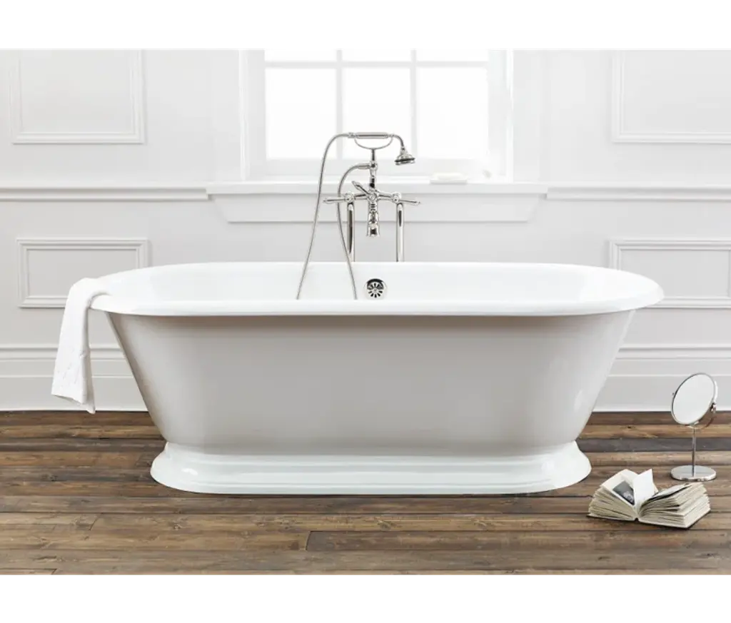 Building on the great success of the original Sandringham bathtub which was launched as part of our Master Collection. This large-format bathtub offers a deep bathing experience with a low vertical profile. Cheviot Products cast iron bathtubs are handmade in Europe with the finest materials. Fired with a thick coating of AA-grade titanium-based enamel for unparalleled hardness and non-porosity, the extremely durable surface is easy to clean and resistant to stains, bacteria, and other microbes. Cast iron also keeps your bath warm for the longest possible time.