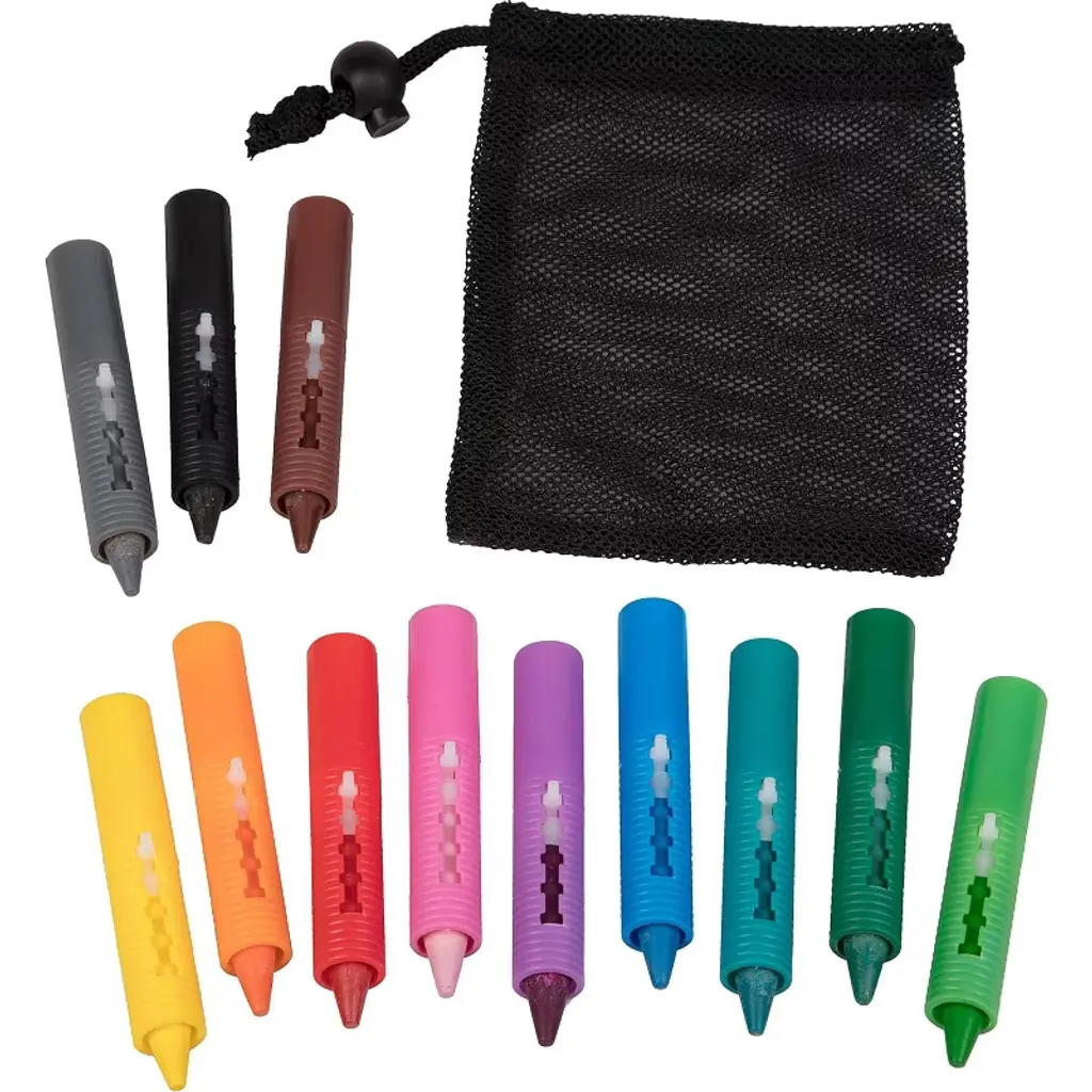Scs Direct Bath Crayons Super Set Of 12 Draw In The Tub Colors W Bathtub Storage Bag- Safe For Children-art Project Gift For Toddlers & Kids