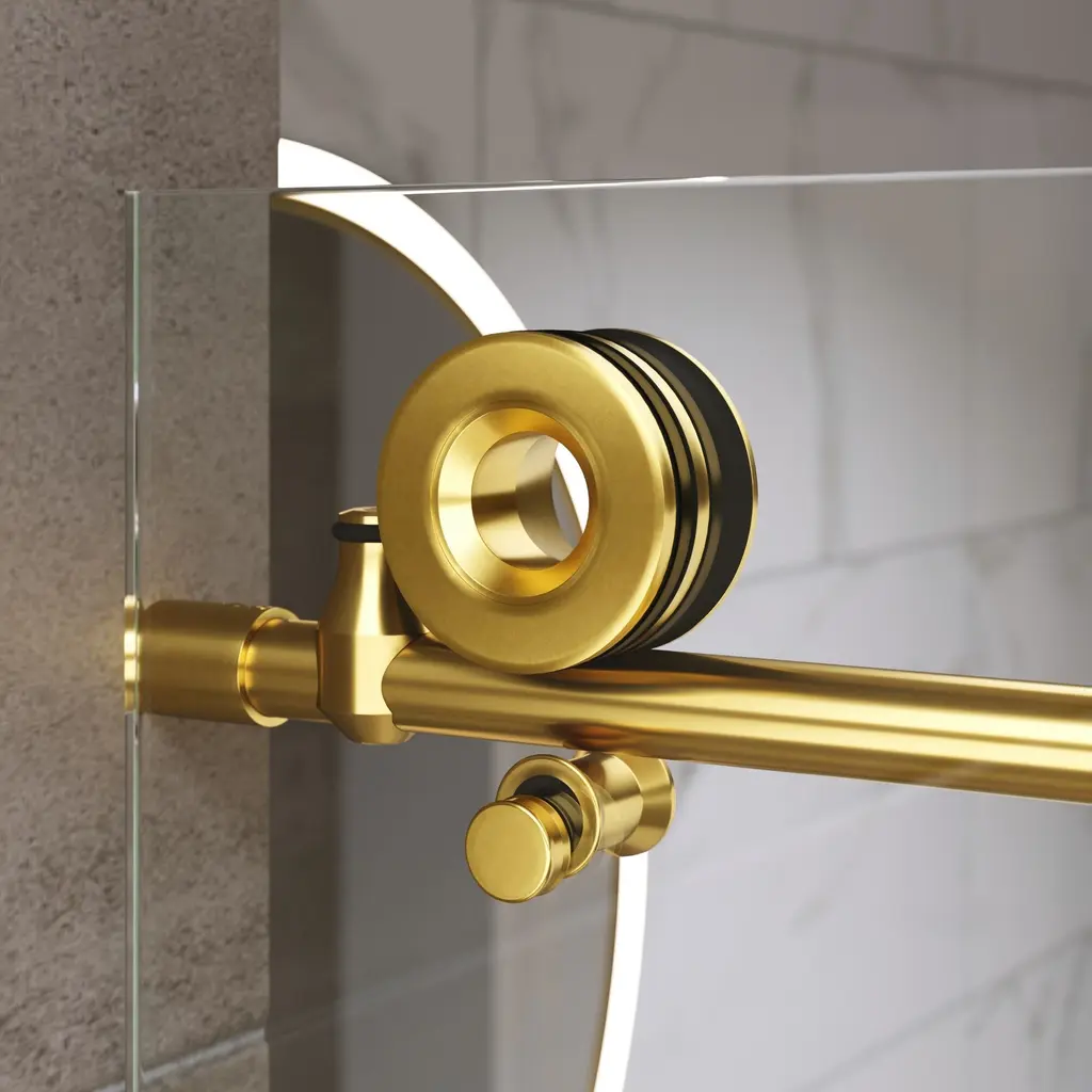 Seawin Hugo 56 - 60 X 62 Inches Frameless Sliding Bathtub Door 3/8 In. (10 Mm) Clear Tempered Glass With Nanoshield Coating - Satin Gold