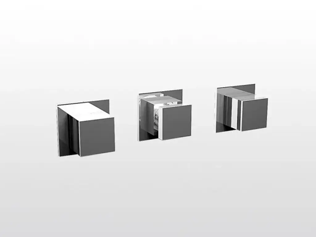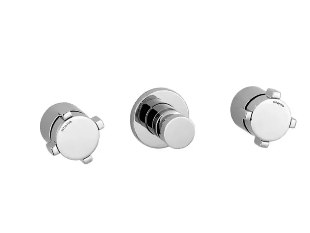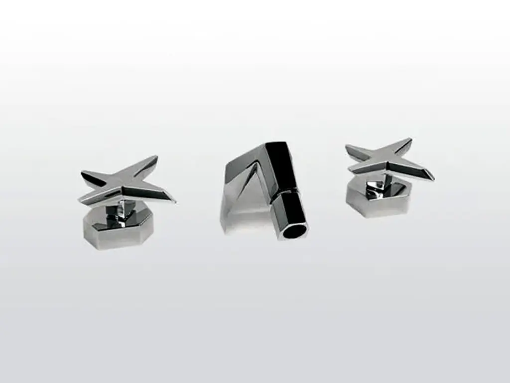 Stella 3256 - Deck mounted twin-control bath and shower mixer with manual diverter. Supplied without spout and shower components.Stella has decided to give its own name to a project that opens up a new idea in aesthetic and technical research. The design is extremely simple and yet highly original, with a handle that introduces a powerful personality. It is an invitation to touch as well as to look. The balance of asymmetrical shapes intensifies the uniqueness of this design object. The Stella collection uses ceramic headwork, a technical solution that makes it possible to open the tap fully with just half a turn of the handle.