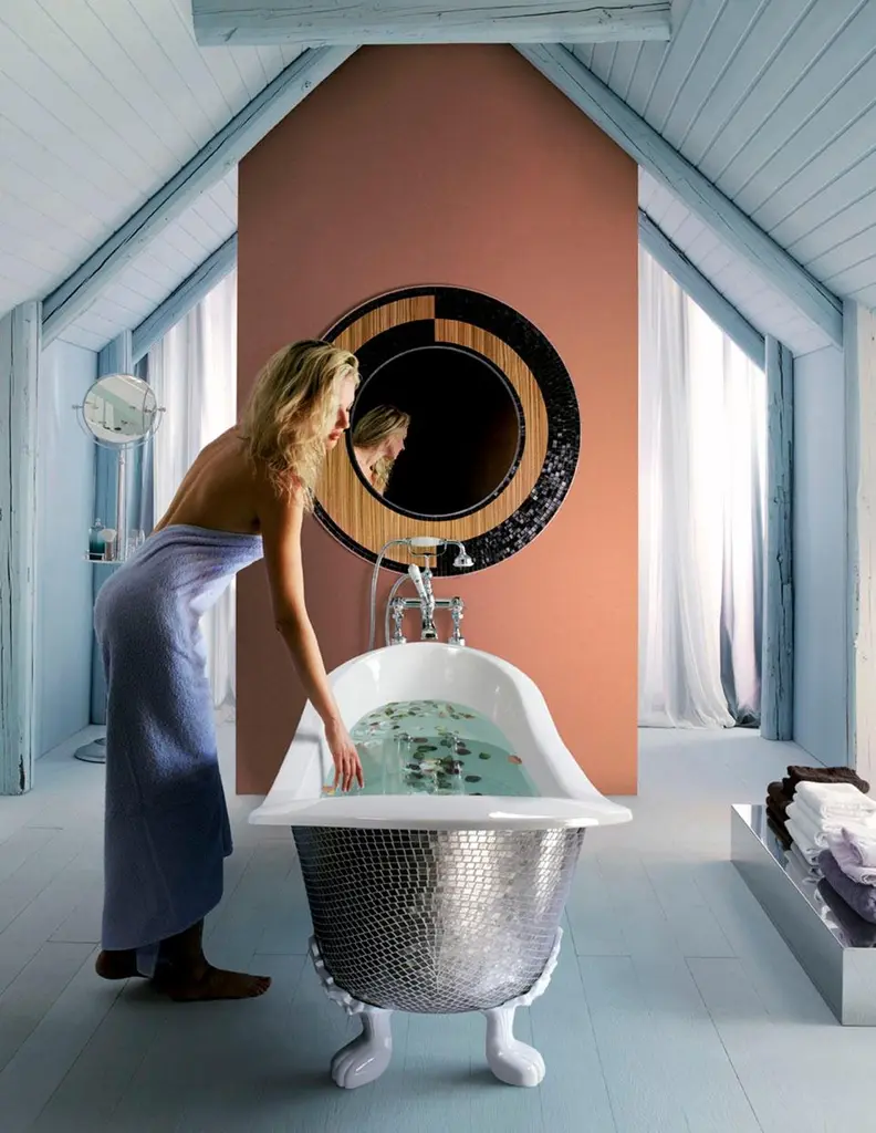 Stylish Bathtub Hand Decorated With Mosaic Platinum Leaf On Back