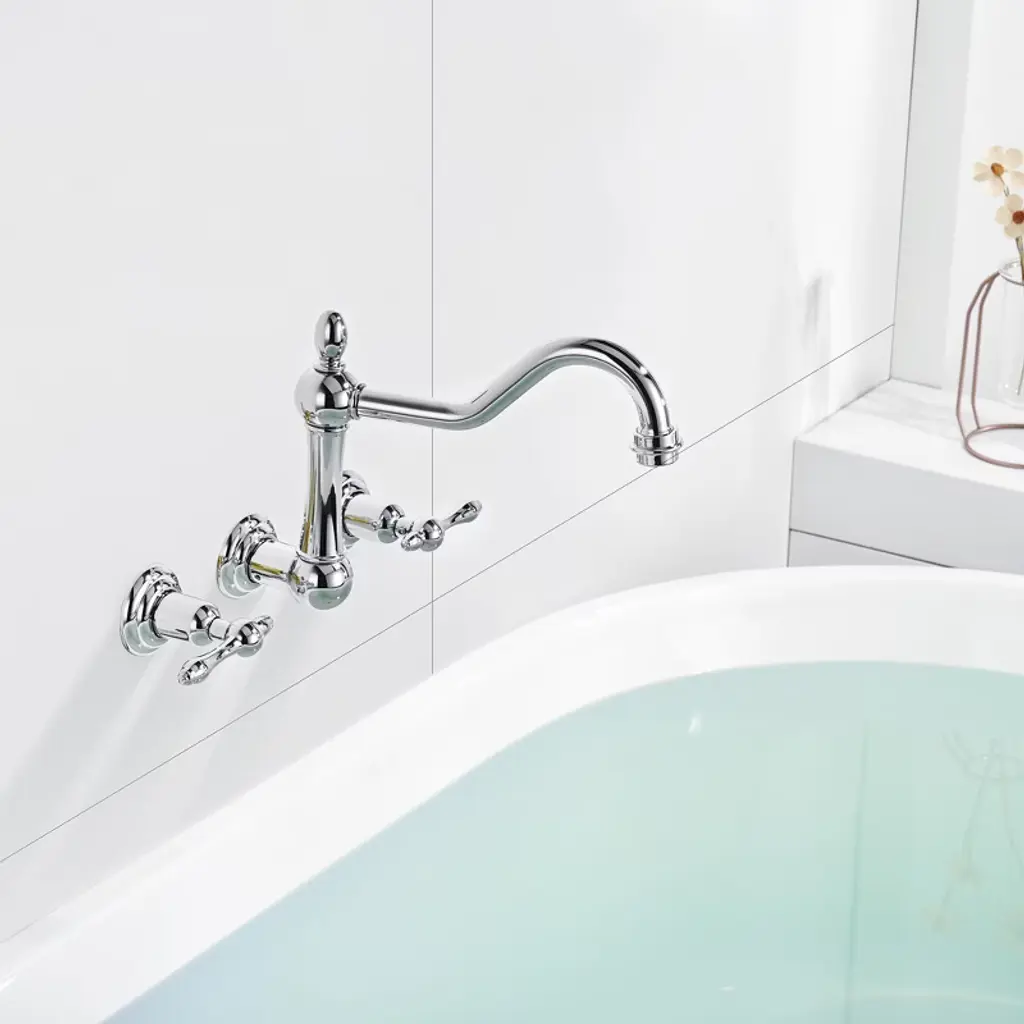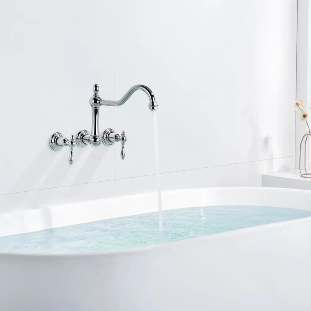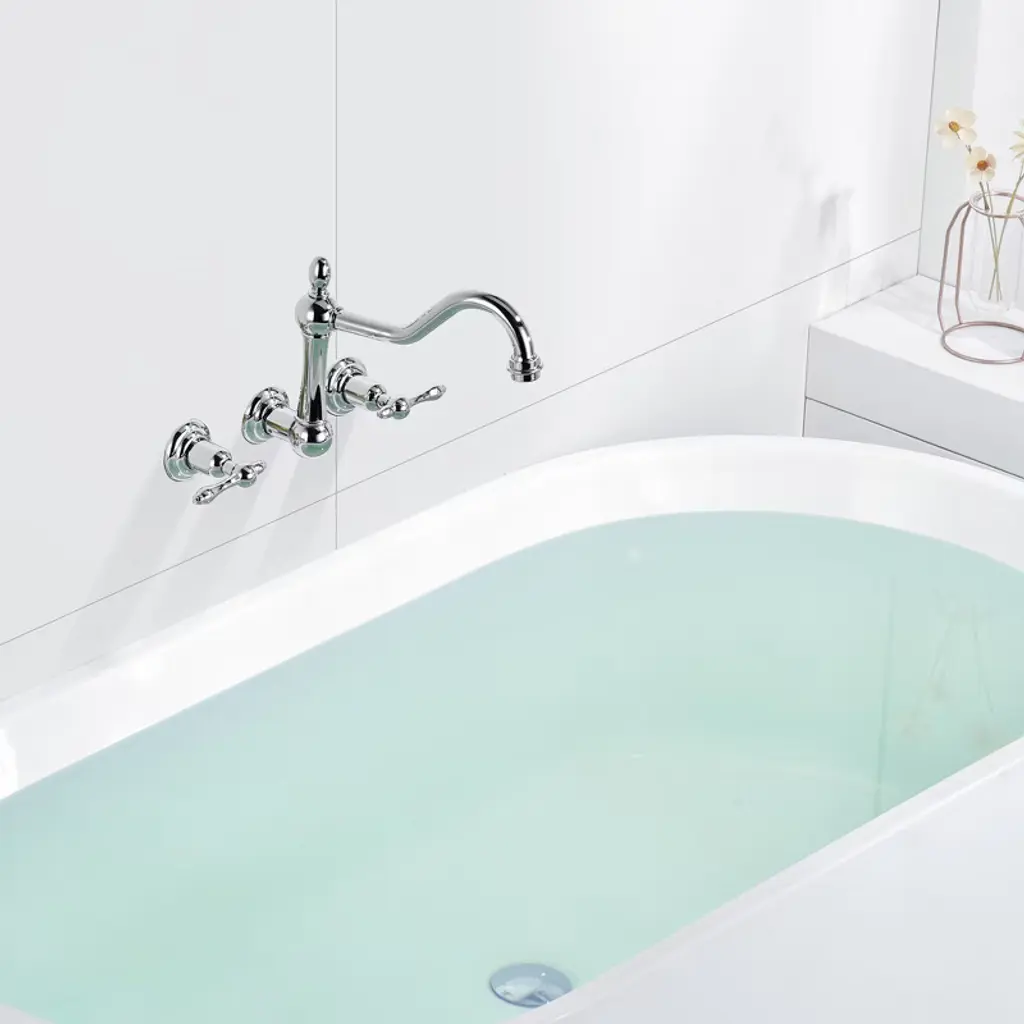 Sumerain Vintage Tub Faucet Filler Wall Mount Bathtub Faucet 3 Hole 8 Inches Center Chrome