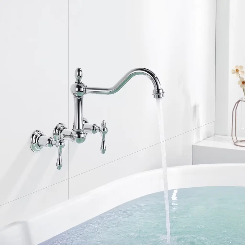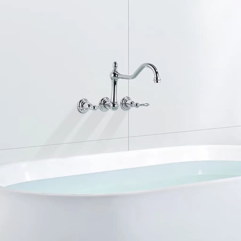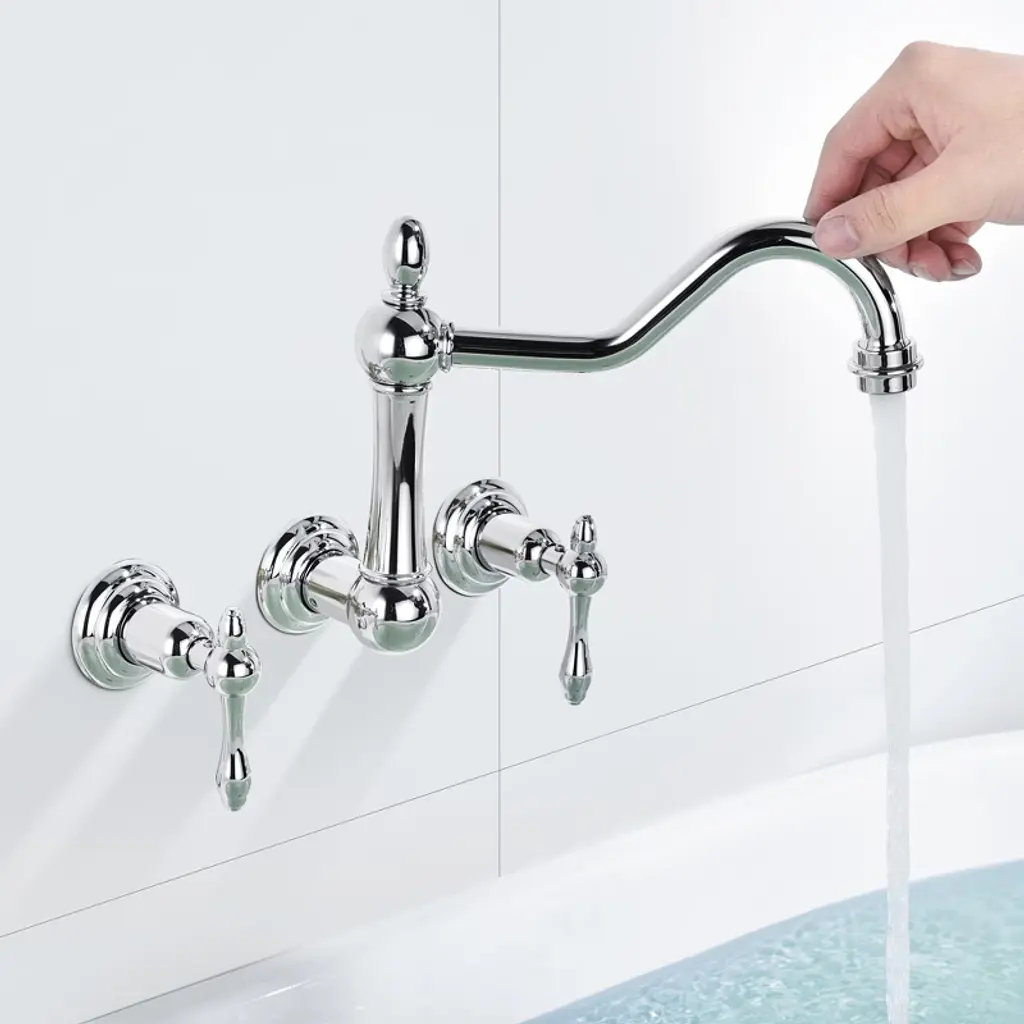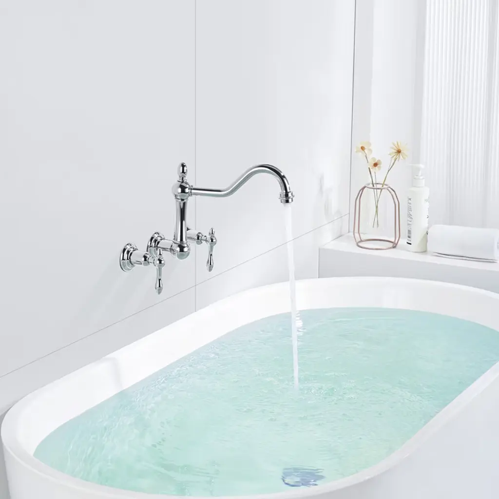 Sumerain Vintage Tub Faucet Filler Wall Mount Bathtub Faucet 3 Hole 8 Inches Center Chrome