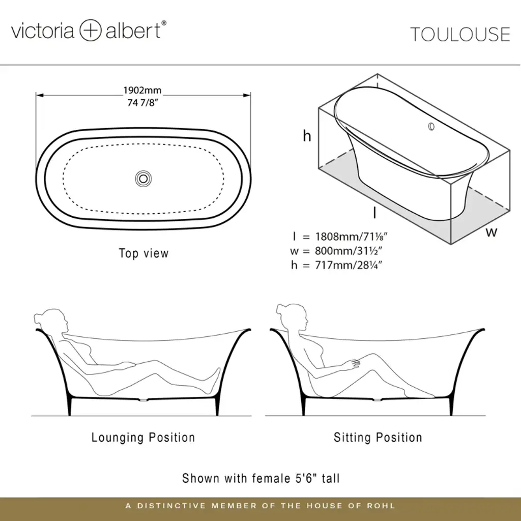 The classic French bateau bath is famous for its stylish sophistication and continental panache. The Toulouse takes the boat-like bateau shape from the 1860s and gives it a modern, sculptural feel. More refined than a roll-top and with greater subtlety, the deep, double-ended Toulouse has delicate curves and a gentle sloping shape. Designed to recline and sink deeply into relaxation, Toulouse offers exceptional comfort and lush immersion. This is a bath that catches the eye and takes centerstage, but does so with grace and elegance.