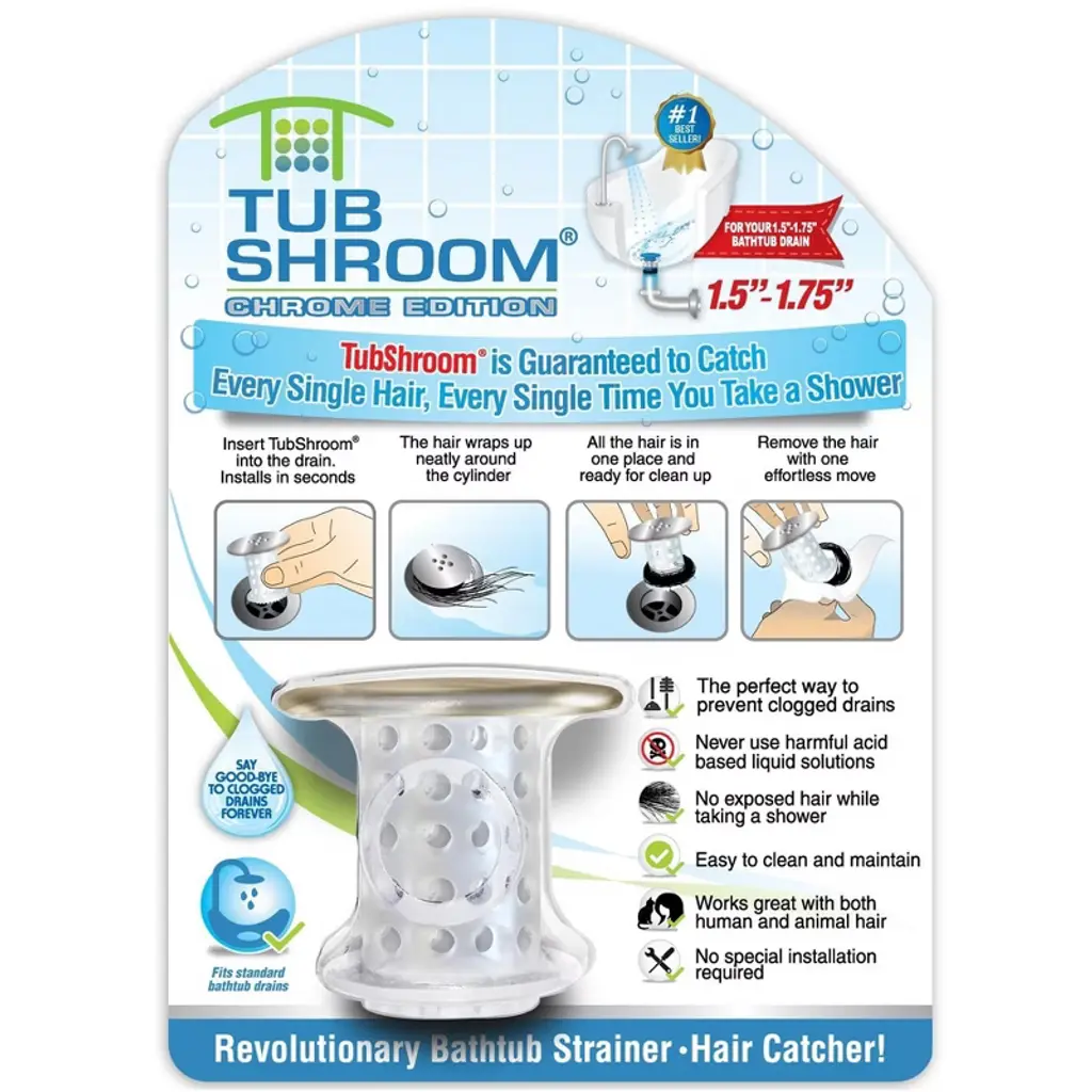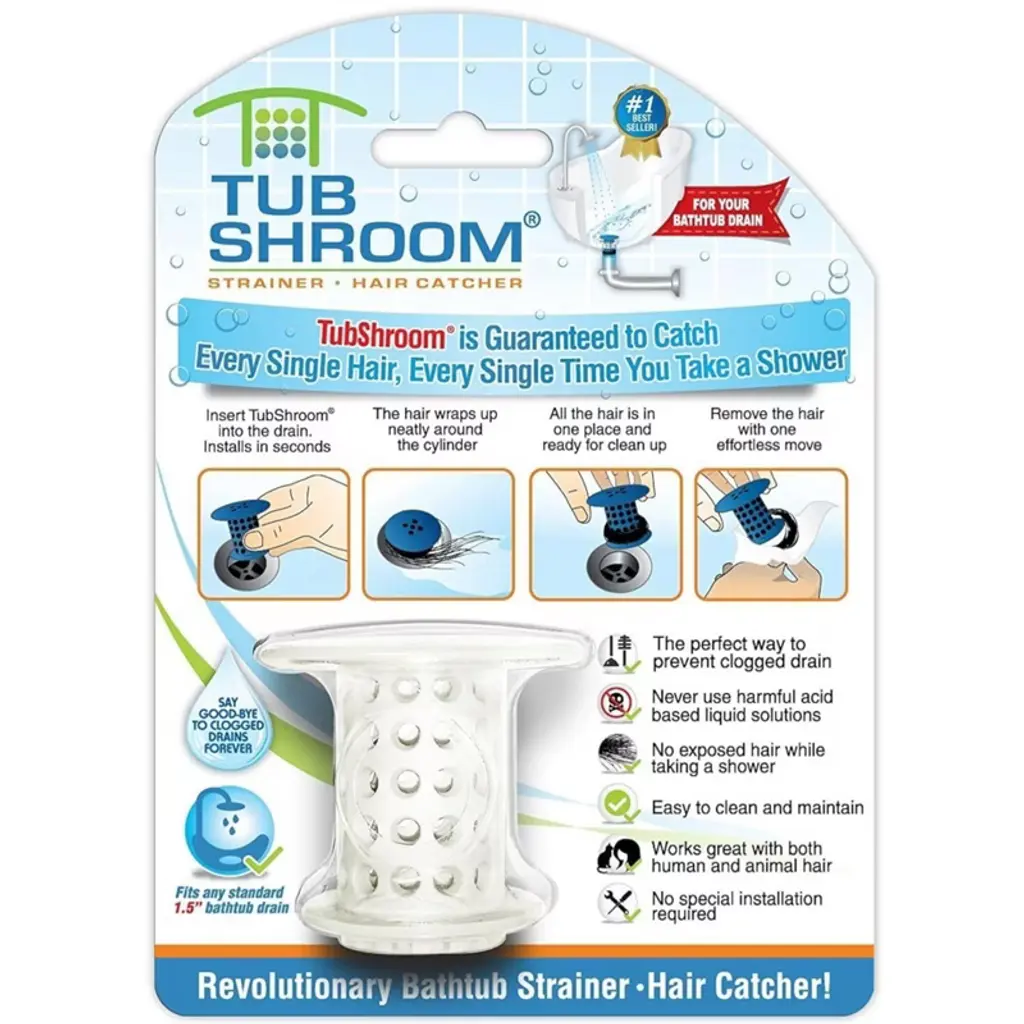 Unlike regular strainers that go over the drain, TubShroom fits inside, neatly collecting hair around it. When it's time to clean up, simply wipe TubShroom off and GO!