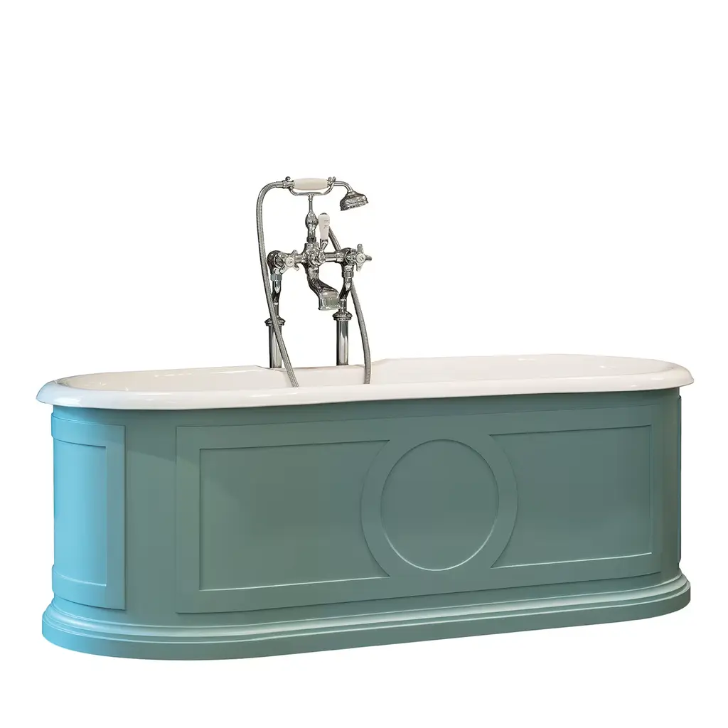Bleu Provence bathtubs on base are the best quality. Enameled in titanium 2mm, a huge choice of colours and metal finishes (shiny, glossy or matt). Exist in various sizes (from small to large : 137 to 180 cm) and different shapes.IMPORTANT NOTICE ON CAST IRON BATHTUBS:- All bathtubs are in cast iron and enameled in Titanium.- The feet are made of cast iron and may have a white, colored, chrome or gold finish, nickel, nickel matt.- Colors: for the outside, all colors are possible. Just give us the desired RAL or NCS code.- Bathtubs prices are without waste or syphon.- On request, we can make a hole for the taps.
