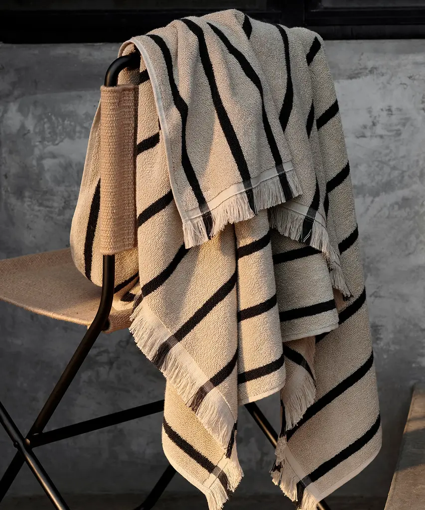 Nothing is quite as comforting and decadent as wrapping yourself in a soft, thick towel after a long bath or day at the beach. The Alee Beach Towel is made from a rich, GOTS-certified, organic cotton terry, which is highly absorbent and made to last. The towel collection comes with decorative fringes at each end, emphasizing its relaxed feel and expression.Designed and produced by the Copenhagen-based studio Ferm Living.