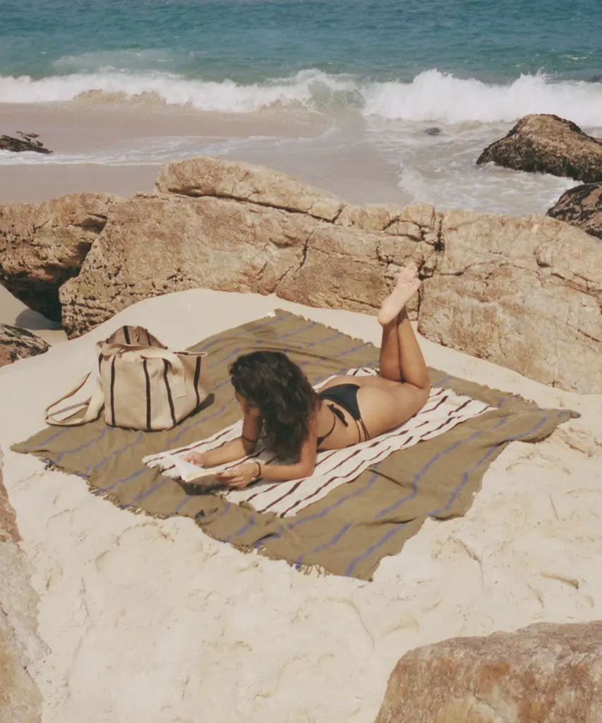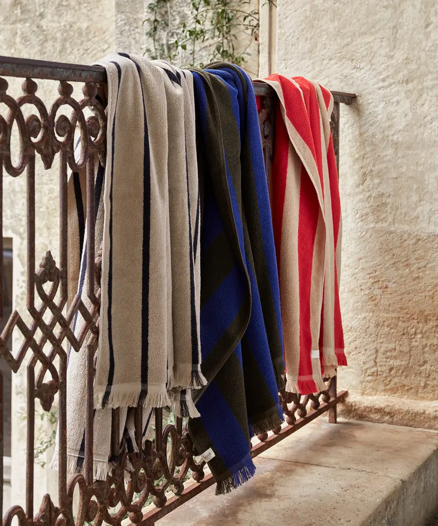 Nothing is quite as comforting and decadent as wrapping yourself in a soft, thick towel after a long bath or day at the beach. The Alee Beach Towel is made from a rich, GOTS-certified, organic cotton terry, which is highly absorbent and made to last. The towel collection comes with decorative fringes at each end, emphasizing its relaxed feel and expression.Designed and produced by the Copenhagen-based studio Ferm Living.