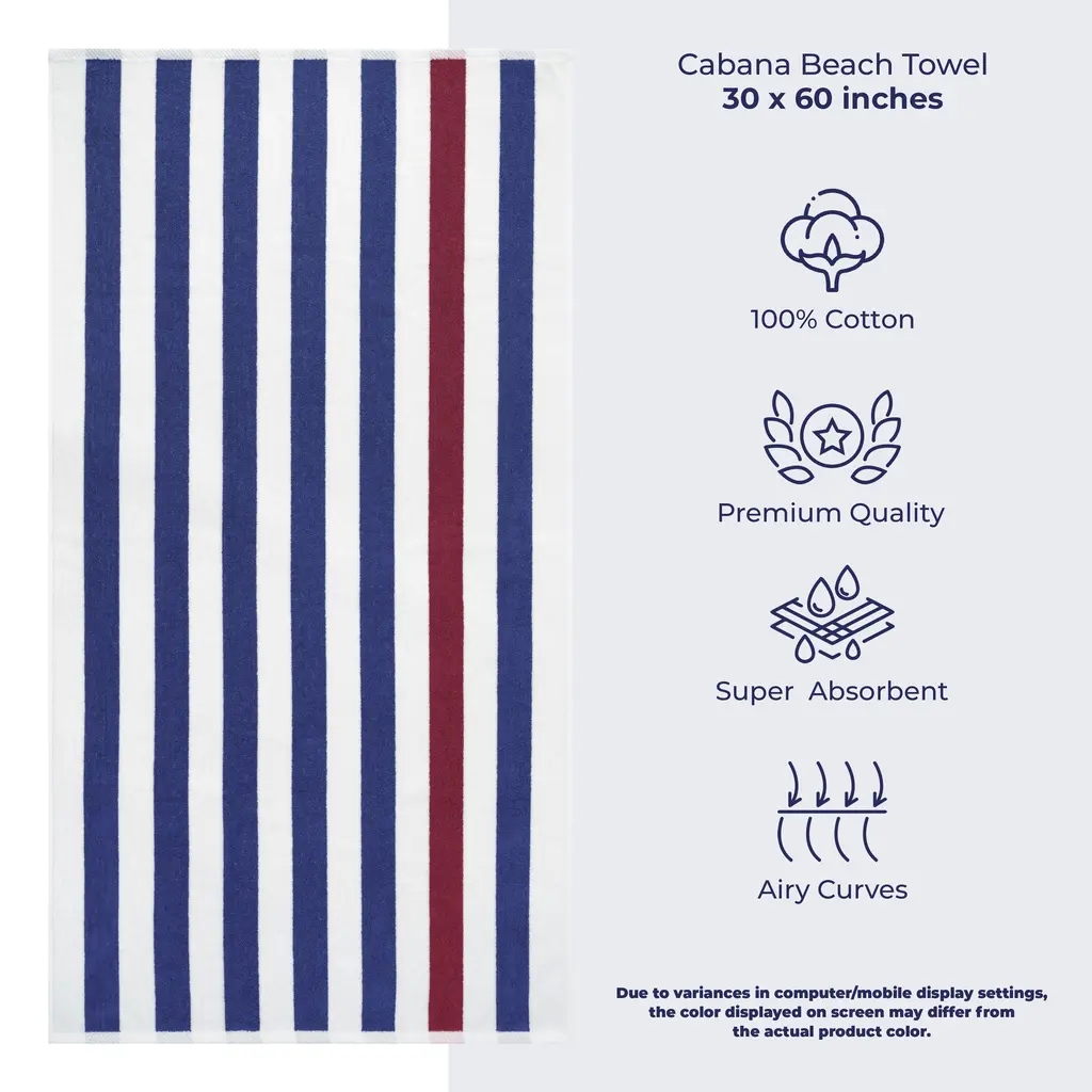 American Soft Linen,100% Cotton 4 Pack Beach Towels, 30 X 60 Cabana Striped Pool Towels - Navy Bordeaux